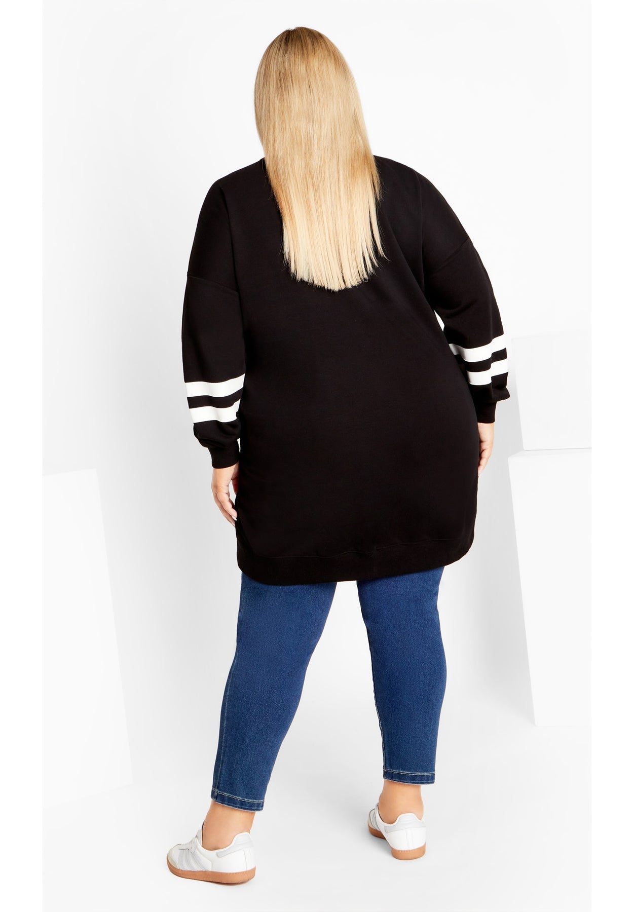 FIT: Model wears an Avenue size 16. Bust: Relaxed fit. Waist: Relaxed fit. Hips: Relaxed fit. Length: This plus size sweater is hip length. Center back measurement: 36 inches.