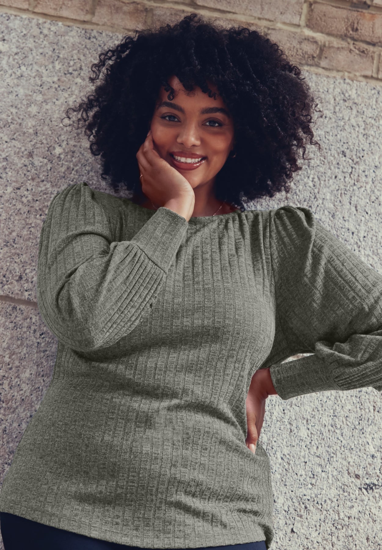Meet your new wardrobe essential—the Jessica Knit Top! With its irresistibly cozy hacci rib fabrication, this top is your go-to for both comfort and style. The chic blouson sleeves with stretch cuffs add a playful touch that’s perfect for any occasion. Whether you're lounging at home or stepping out, feel confident and effortlessly stylish in the Jessica Knit. Add this fashion staple to your collection and turn everyday moments into something special!