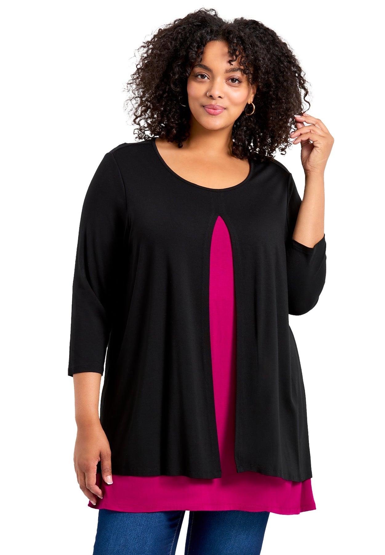 - Hip-length hemline