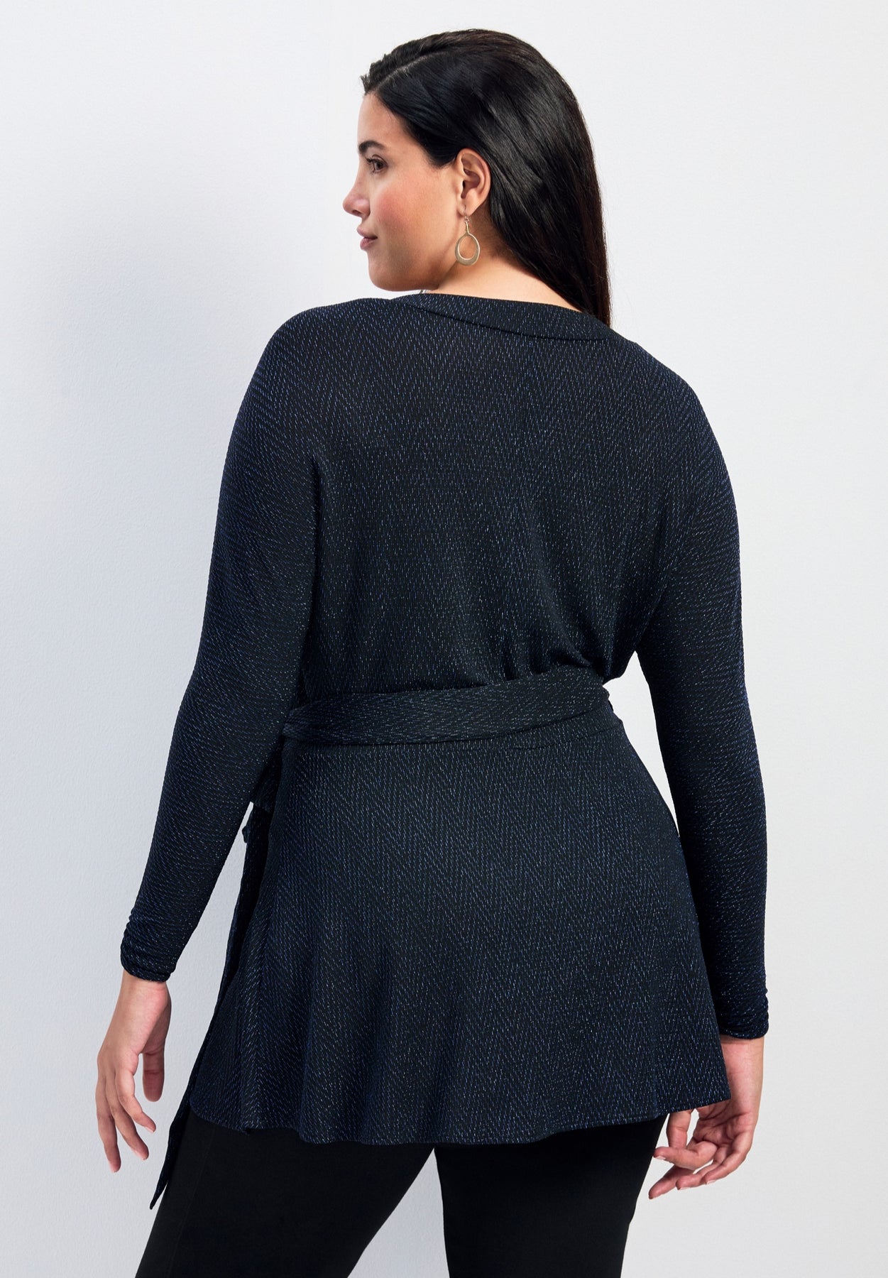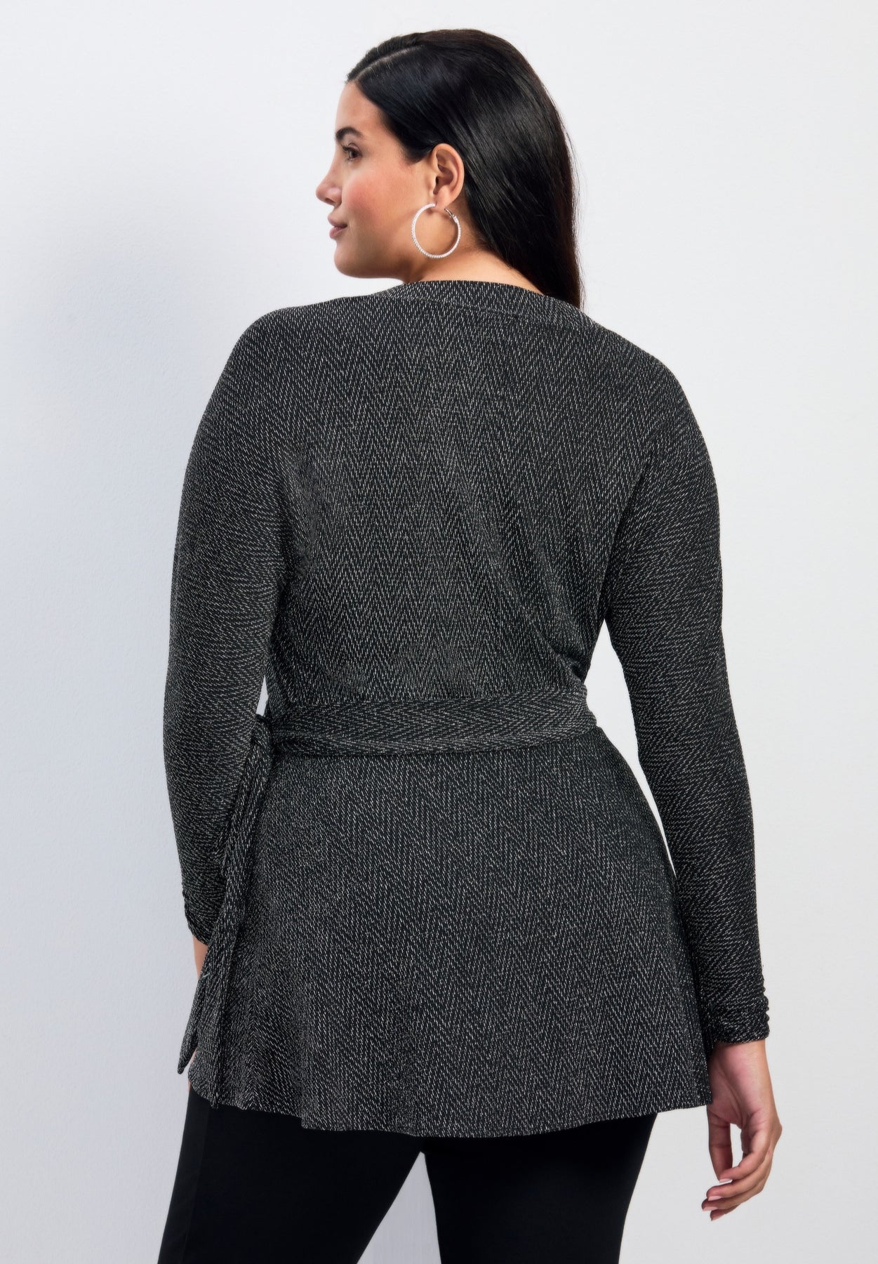 Introducing the Glamour Wrap Top—the ultimate statement piece for your evening ensemble! This metallic knit wrap top is designed to dazzle and shine, ensuring you leave a lasting impression wherever you go. Whether it's a night out with friends or an evening gala, this top is your ticket to glamour!