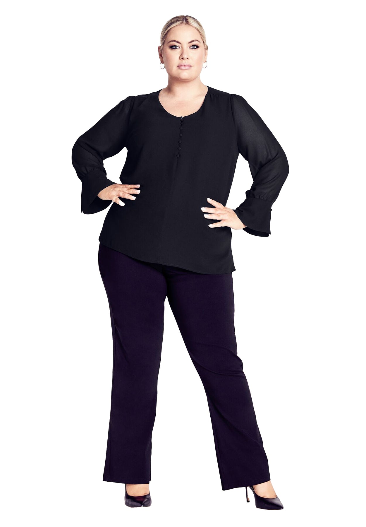 Go for chic color this season in our plum-hued Alena Blouse, a desk-to-dinner beauty! featuring a V-neckline and dreamy flared sleeves, you'll feel oh-so confident in this staple piece.Key Features Include:- V-neckline- Functional button-up neckline detail- Long sleeves with flared triple button cuffs- Pull-over fit- Darted bust for shape- Non-stretch fabrication- Lined bodice- Hip-length hemlineHeading out for a day of meetings? Upstyle with tailored black trousers and chain embellished loafers.