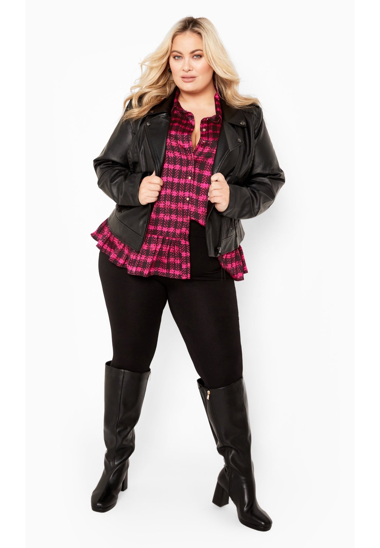 Amp up your style with the perfect balance of classic and contemporary design with the Gracie Shirt! Boasting a collared neckline, full-length sleeves and ruffle hemline, radiate timeless trendy feel with this stylish shirt!Key Features Include: - Collared neckline- Front button closure- Full length sleeves- Ruffle hemline- Button cuff- Relaxed fitStyle with a faux leather midi skirt and ankle heel boots.