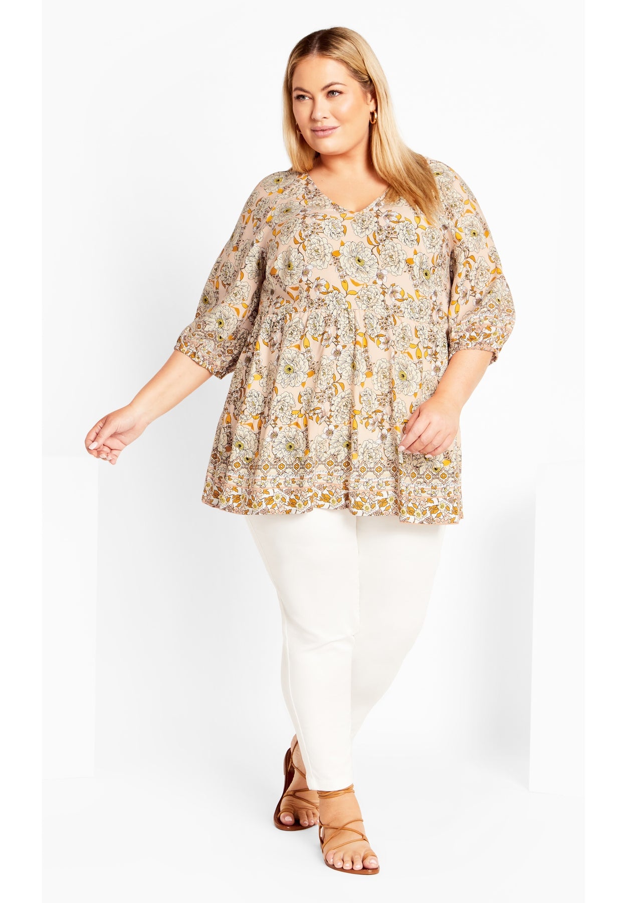 For a laidback yet stylish look, our Alice Border Tunic is just the style. This tunic pulls easily for instant chic, offering a striking print that is sure to upstyle your outfit.