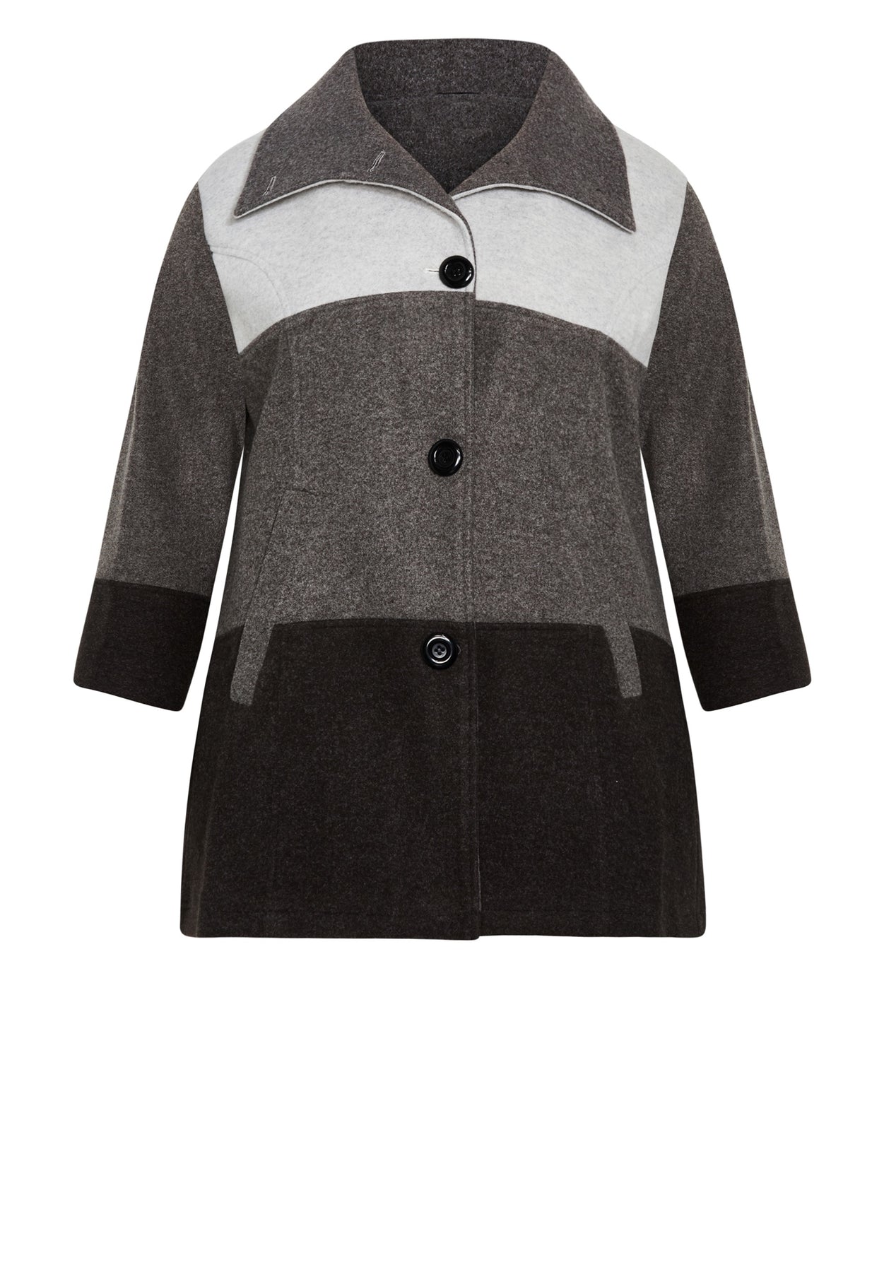 If you love neutral hues, you're bound to fall in love with our Color Block Stripe Jacket in a chocolate color palette. This tri-colored jacket features a classic button-up front, full-length sleeves, and hip pockets.