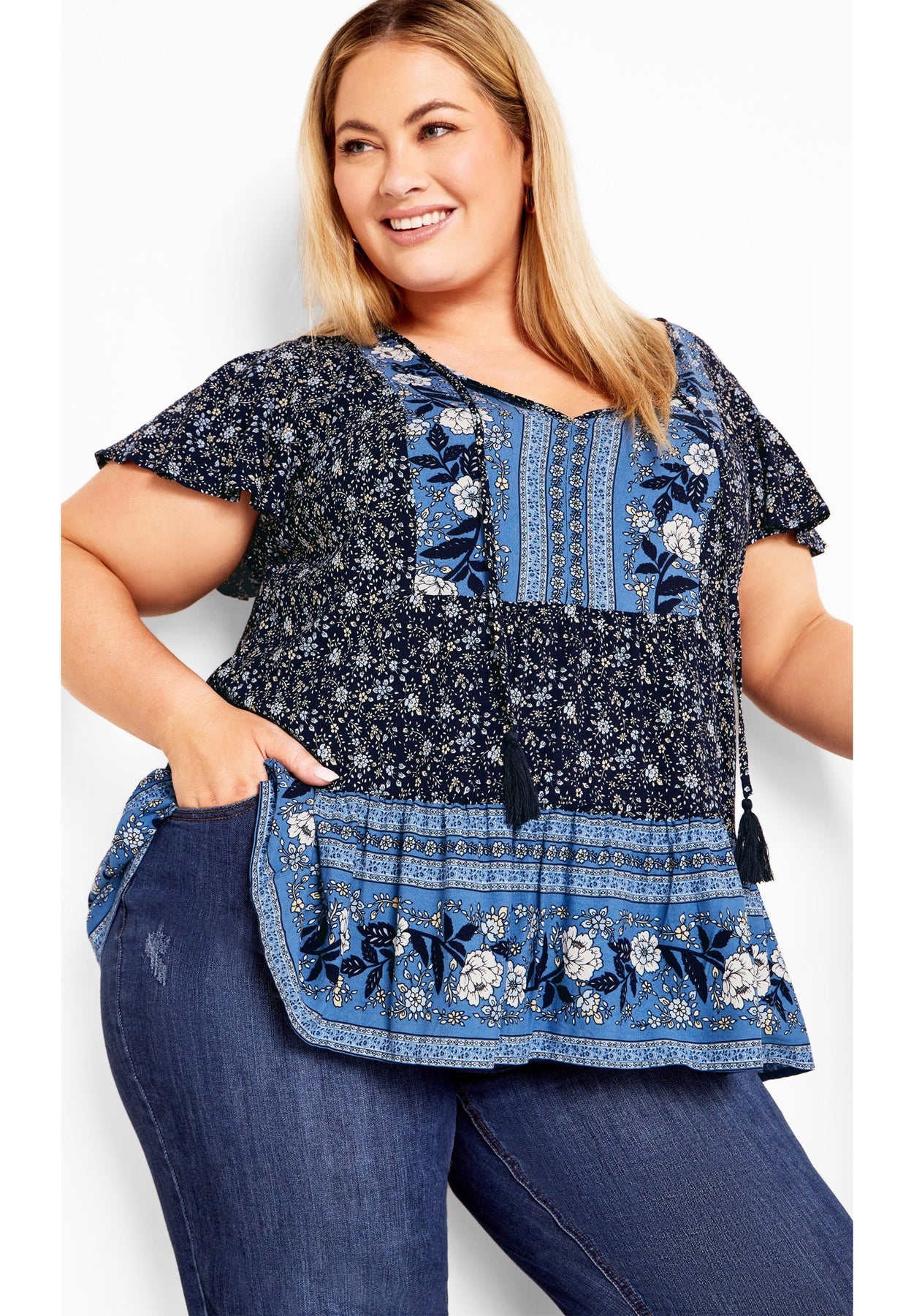 Fire up your summer stylings with the pretty and chic Enchanted Top, offering a self-tie neck detail and relaxed silhouette. In a pretty tiered design, this top is perfect for cool, casual styling. Key Features Include: - V-neckline with self-tie detail - Short sleeves - Relaxed fit - Tiered design - Pull over style - Hip length tiered hemline Wear with a pair of capri pants and easy slides.