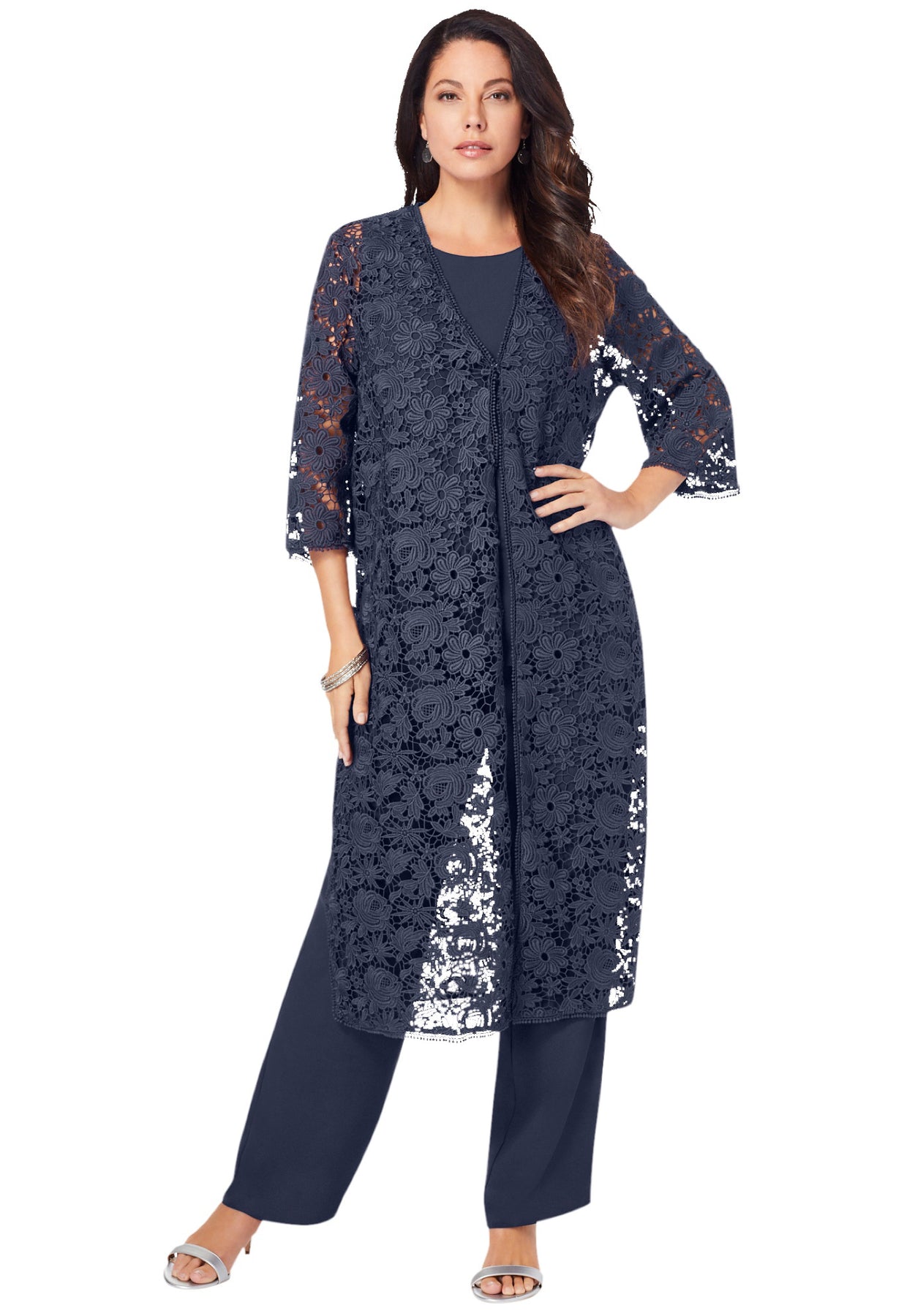 Plus Size 3-Piece Allover Lace Duster Pant Set – Formal Wear