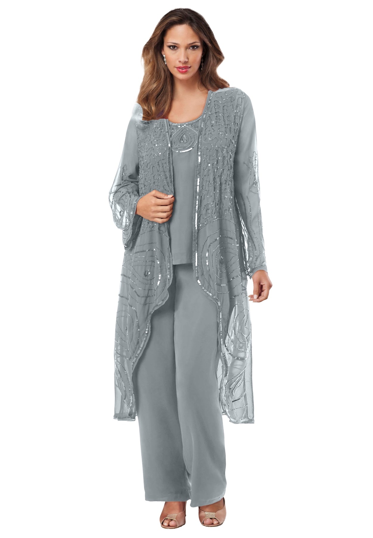 Plus Size Beaded Georgette 3-piece Pant Set – Formal Wear