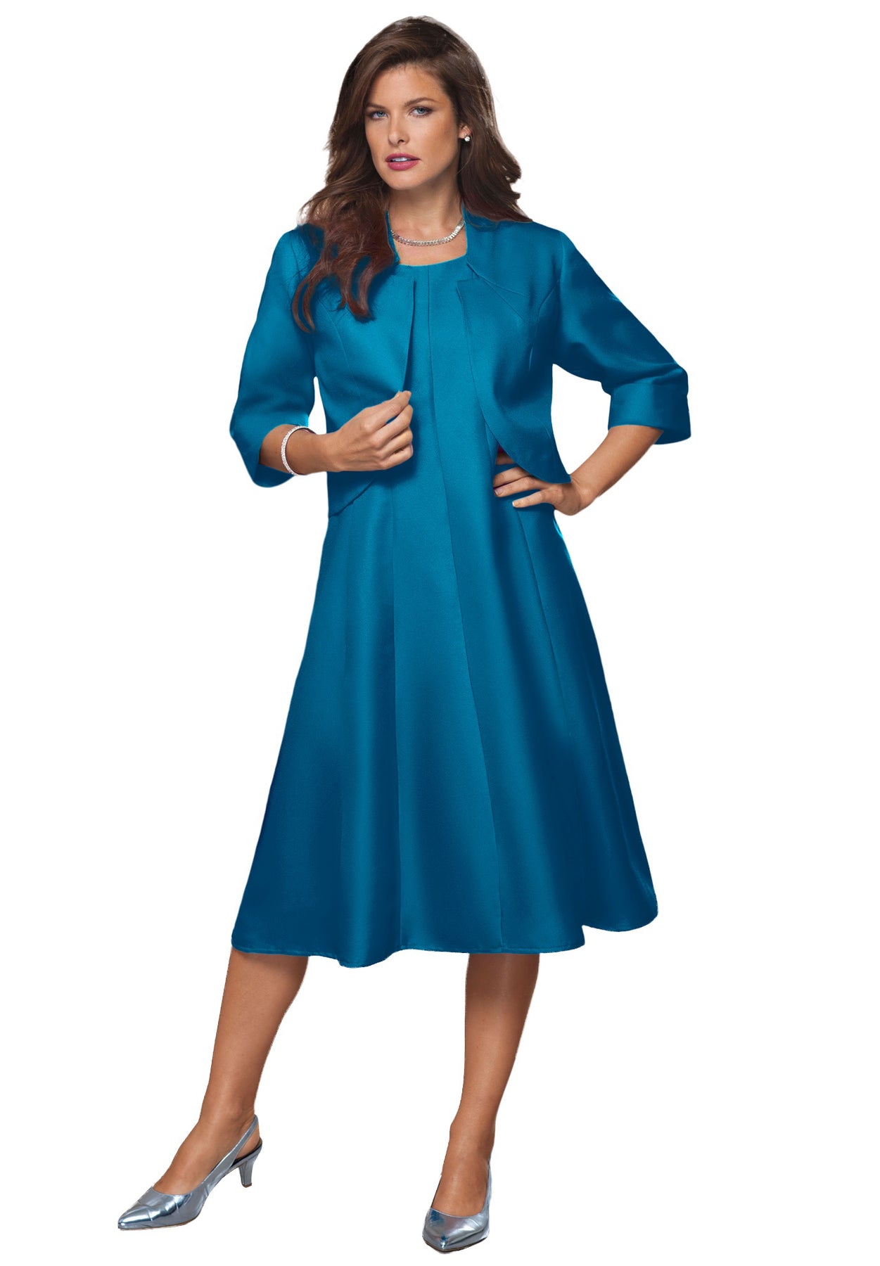 Plus Size Elbow Sleeve Fit-and-Flare Dress with Bolero Jacket – 2-Piece Suit | Roaman&