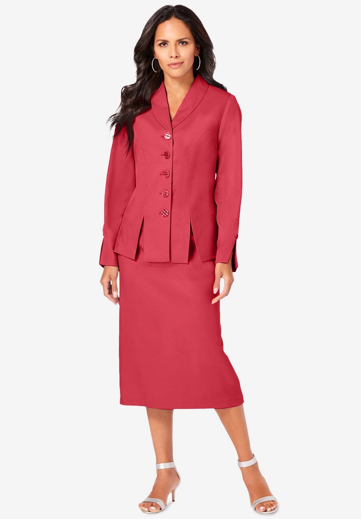 Plus Size Long Sleeve Shawl-Collar Jacket & Sheath Skirt Set – 2-Piece Suit | Roaman&