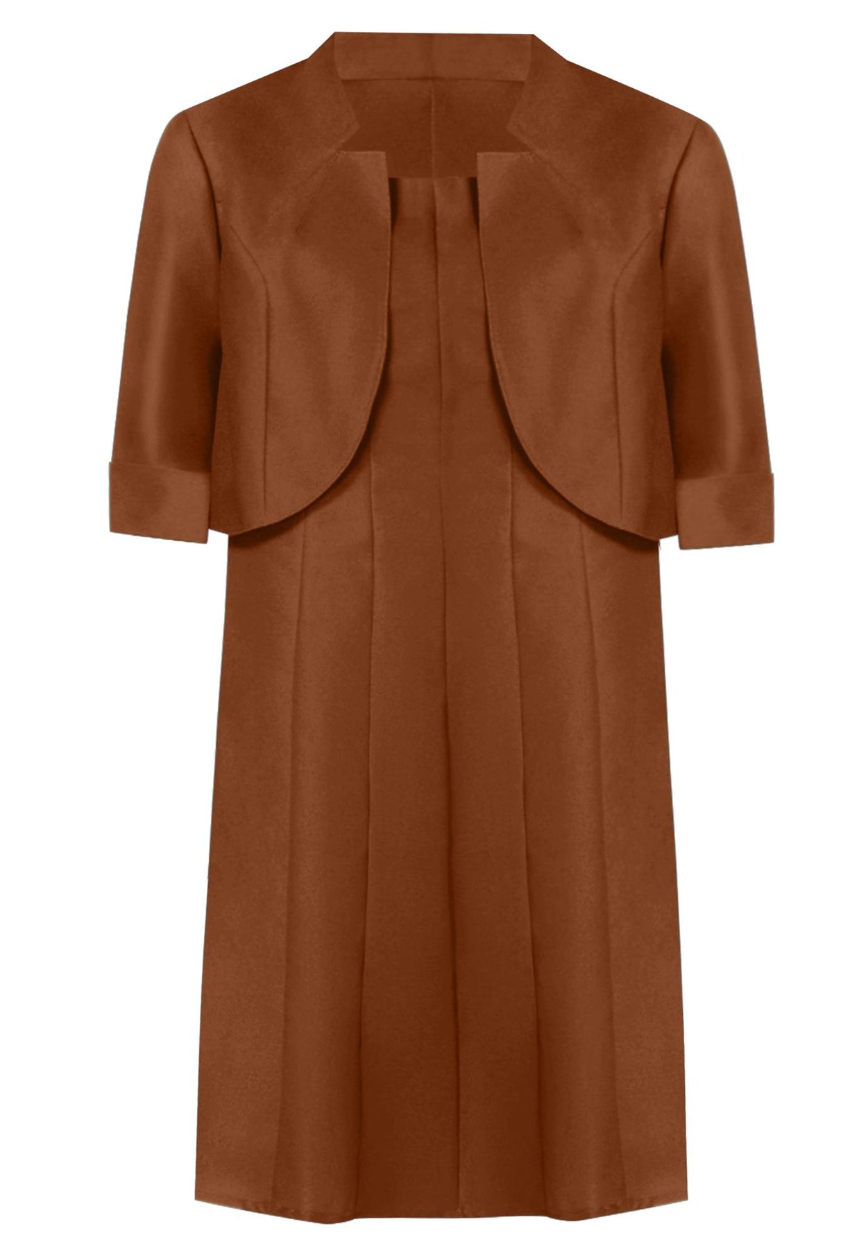 A sleeveless dress and matching bolero jacket bring pulled-together polish to your wardrobe. With suiting-inspired details like a stand collar and cuffed elbow-length sleeves, this is a perfect wear-to-work solution. White dress is lined.