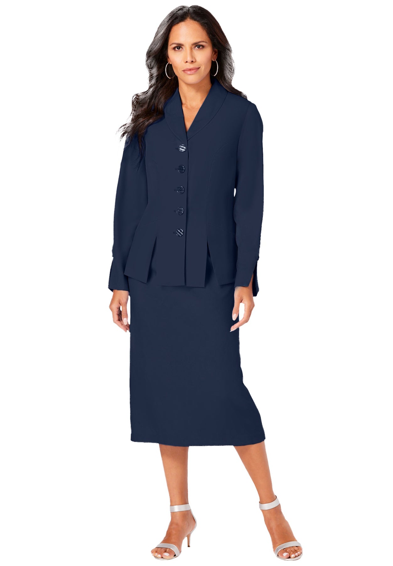 Plus Size Long Sleeve Shawl-Collar Jacket & Sheath Skirt Set – 2-Piece Suit | Roaman&