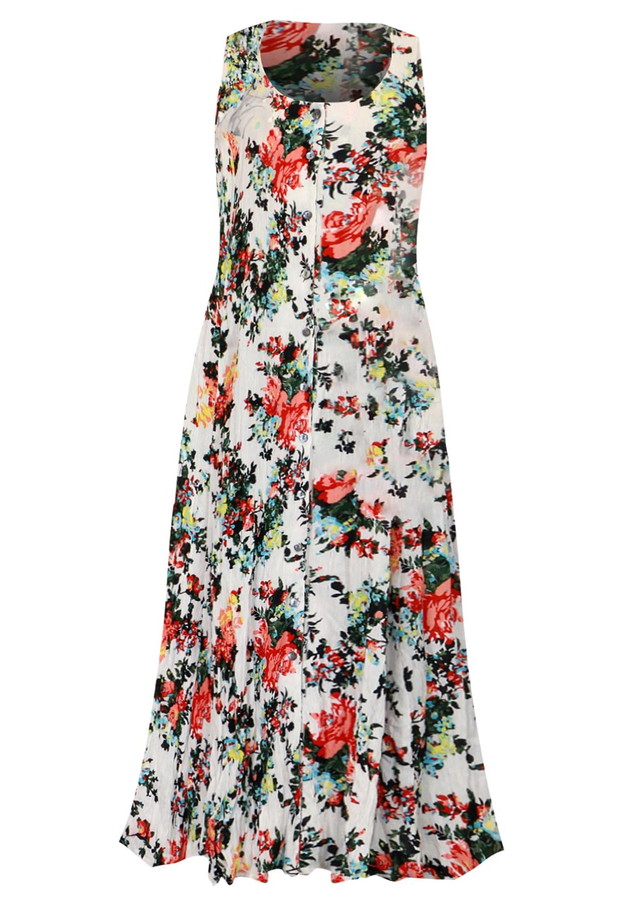 Plus Size Sleveless Hand-Crinkled Button-Front A-Line Maxi – Curvy Breezy Dress | Roaman&