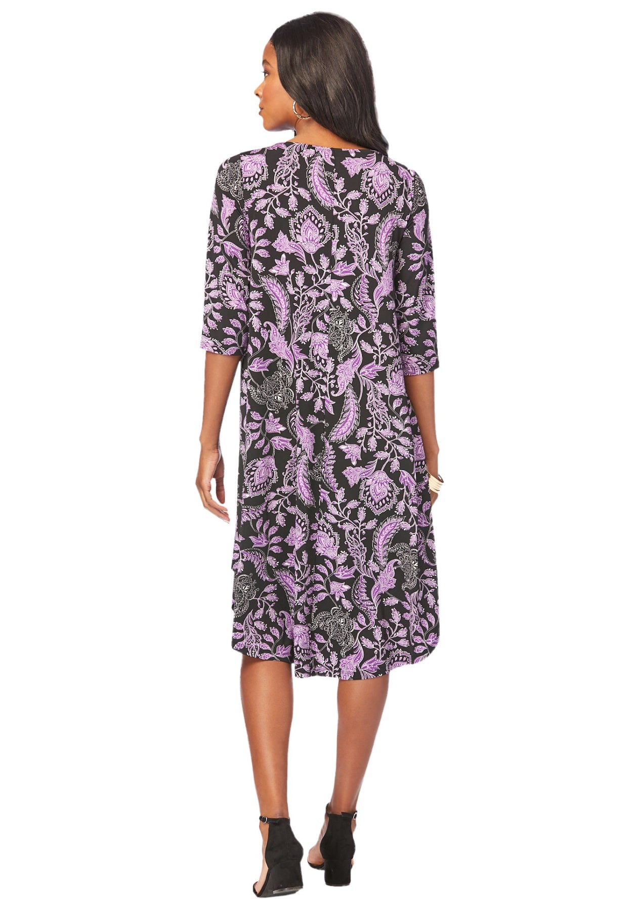 Plus Size 3/4 Sleeve Boatneck Swing Dress | Roaman&