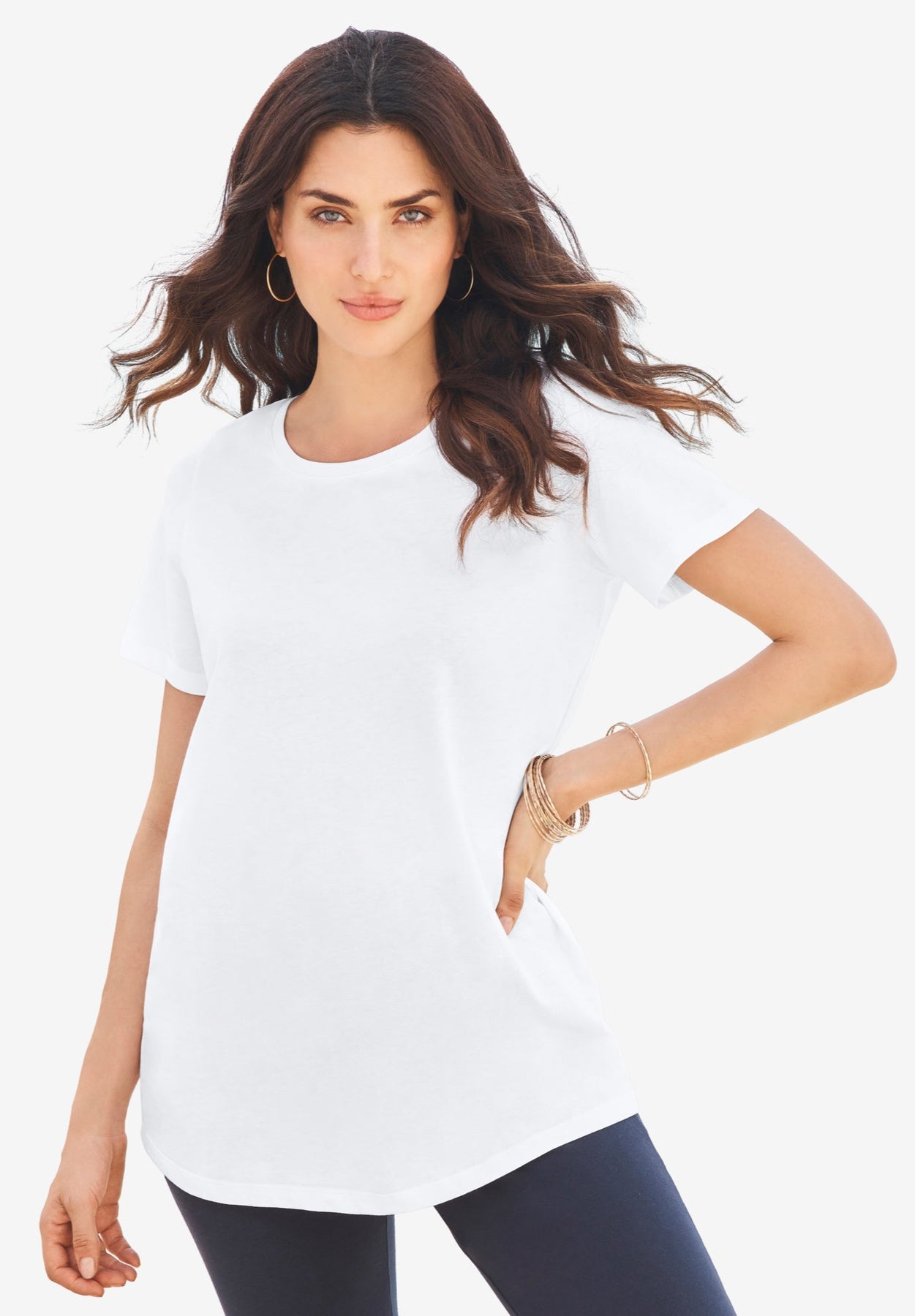 This is a tee you simply can't live without. Made in a knitted cotton-blend that wears and washes beautifully, our fits are designed to flow and never cling. 30" length