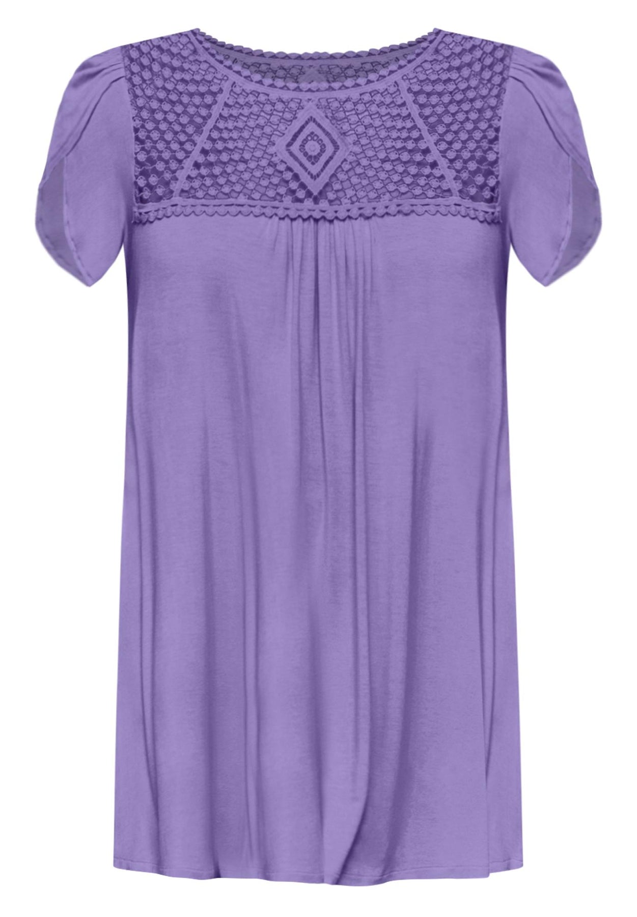 Introducing your go-to wear-anywhere top. A scoop neckline with a lace yoke elevates this already alluring tunic tee. With short tulip sleeves and a relaxed, billowy silhouette, you can dress this breezy top up with slacks or down with jeans.