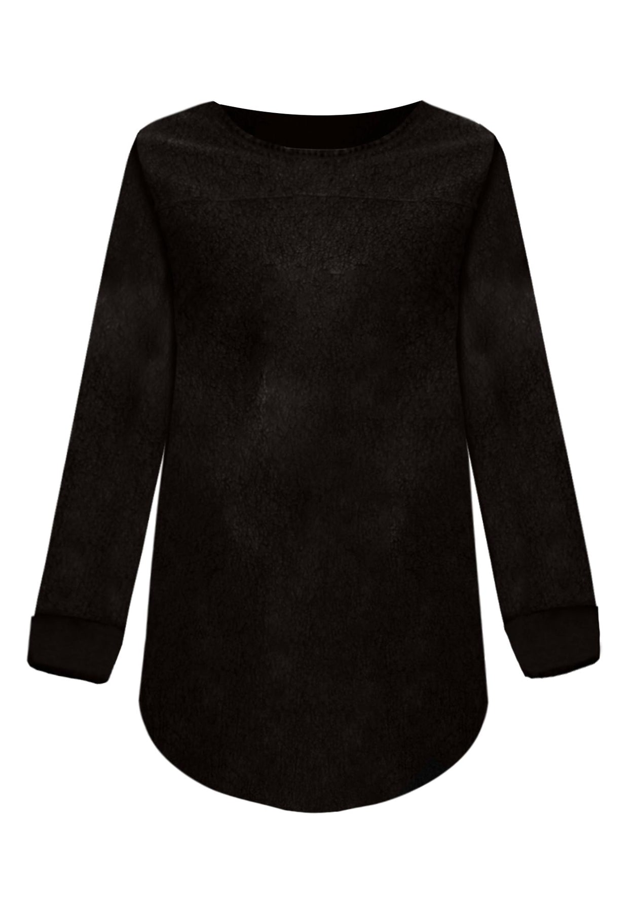This supersoft and cozy tunic is one you'll reach for all season. Detailed with feminine touches like a ruffled neckline and cuffs.