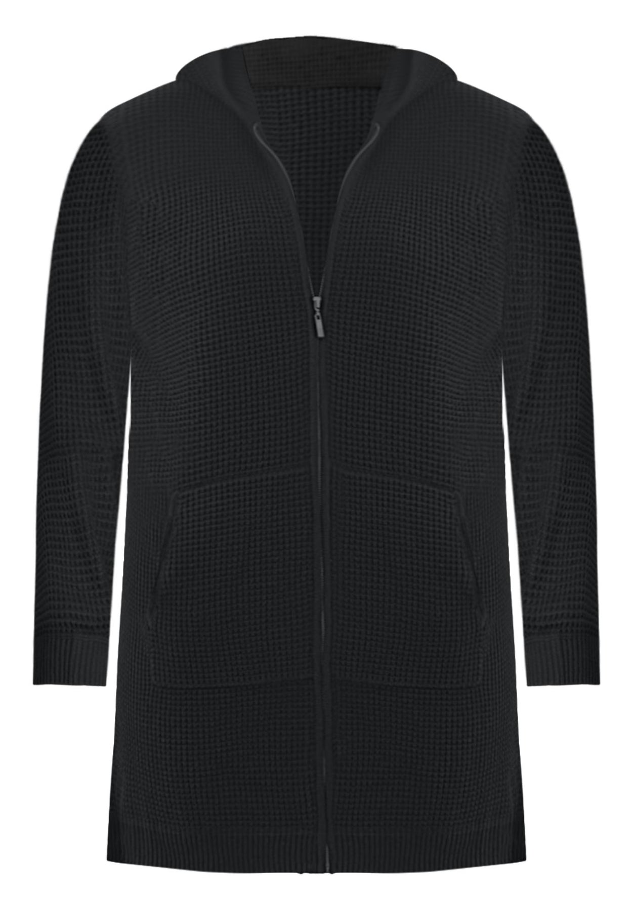 Go the extra mile for comfort with this Mega-Length hoodie. Zip-front with long sleeves and two front pockets, rib cuffs and hem. Side slits.