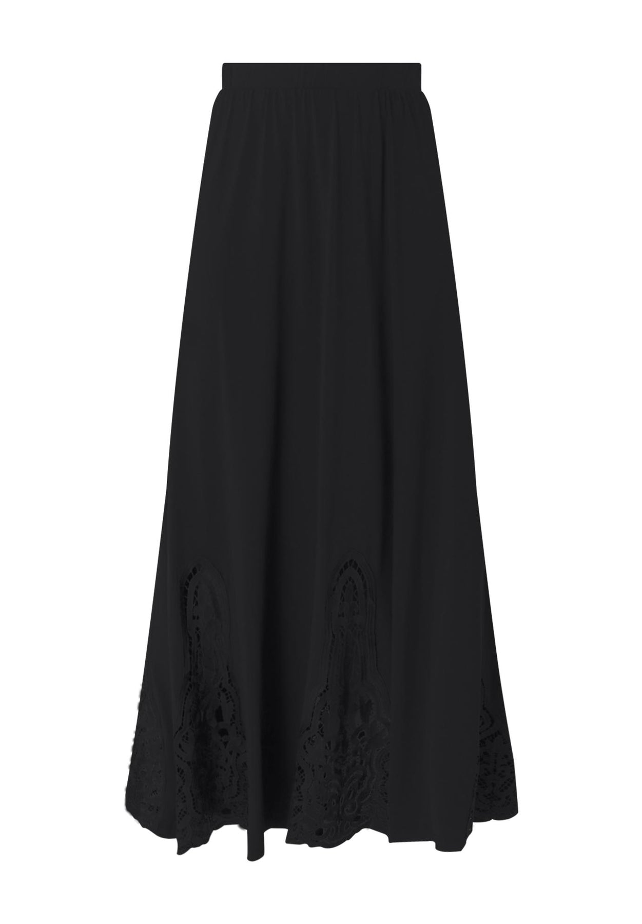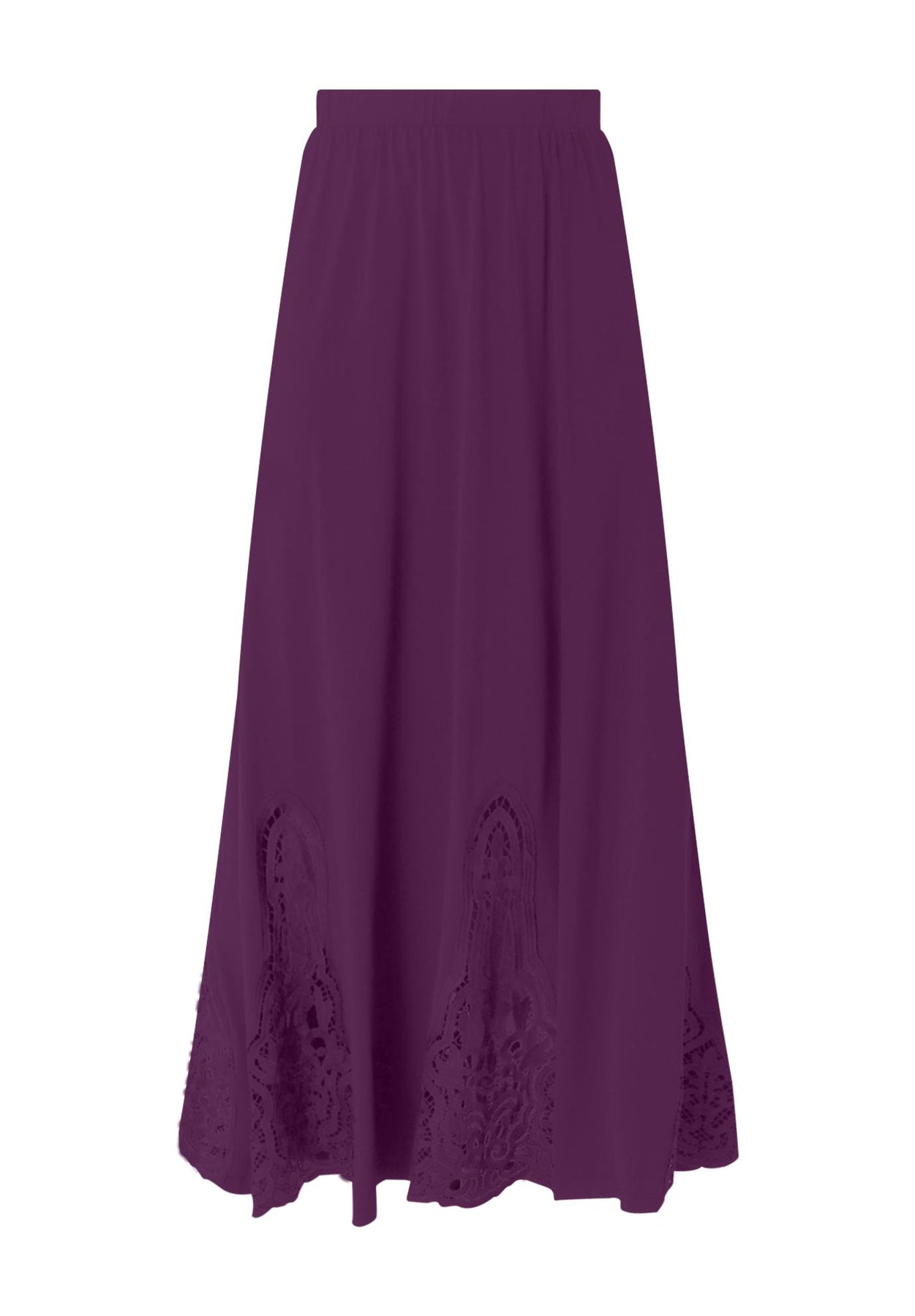 An openwork lace design at the hem adds an alluring, eye-catching detail to this easygoing maxi skirt. It's very versatile, and with its flowing silhouette and elasticized waistband, you can easily go from a day at the office to drinks with friends.
