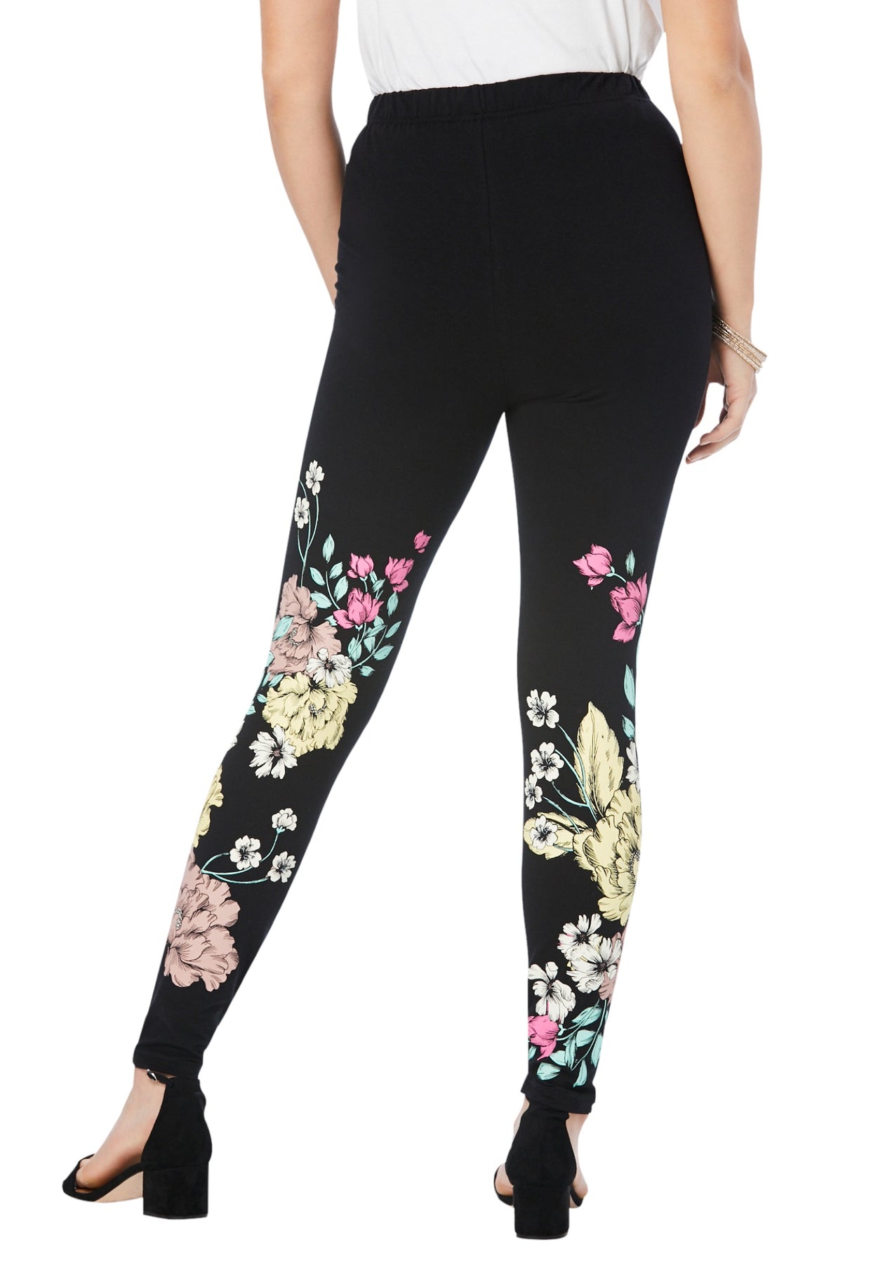 A feminine placement print elevates these fashion leggings for day to dinner wear. Plus the ankle-length makes it a favorite that's so easy to wear and style. Layer under your favorite tunic for modern-glam style. Elasticized waistband.