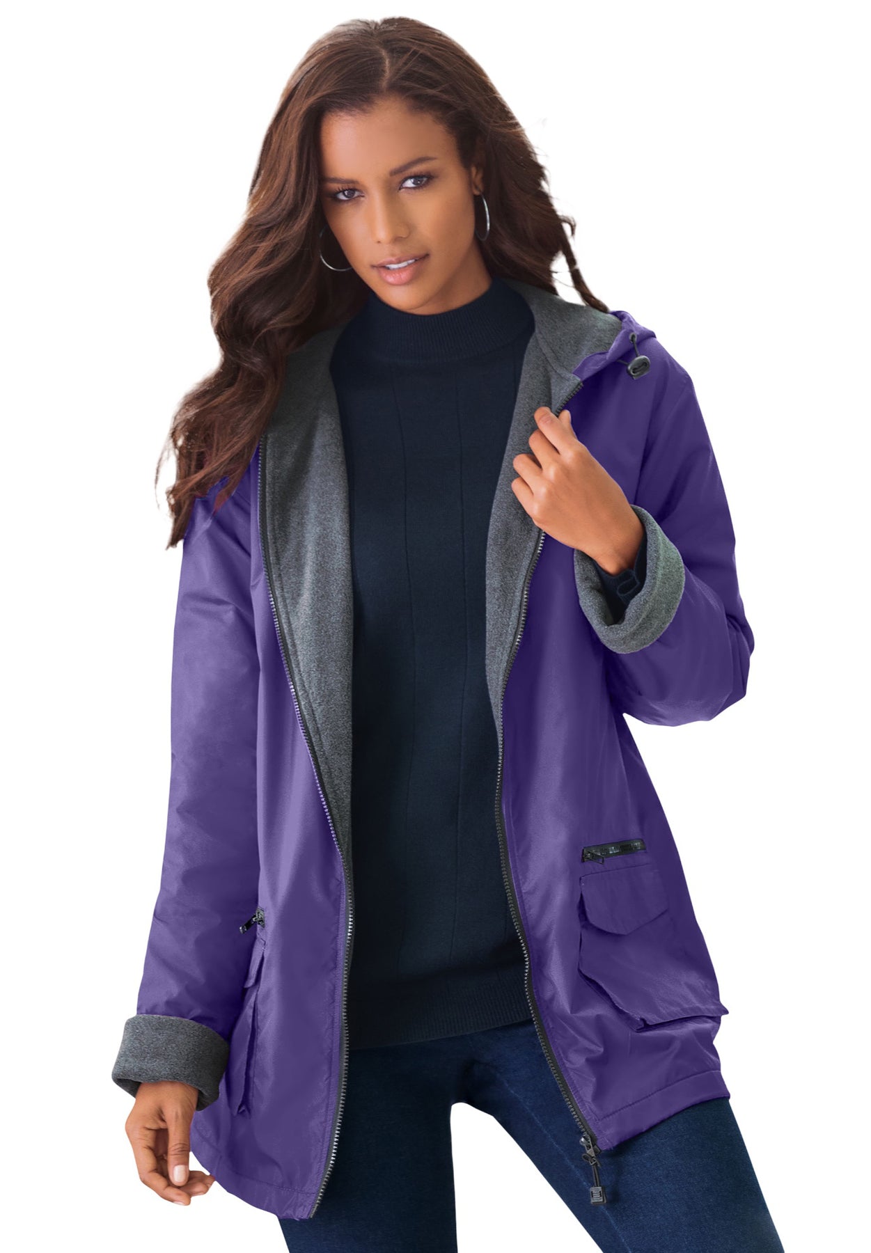 Windproof outside, cozy-warm inside, this fleece-lined jacket is essential for transitional weather. Made in water repellent fabric with a front zipper, cuffed sleeves and hood, it's the stylish, all-weather jacket you need to step up your rain game. This ideal, all-purpose coat even has zip and flap pockets for holding anything you need to keep dry.