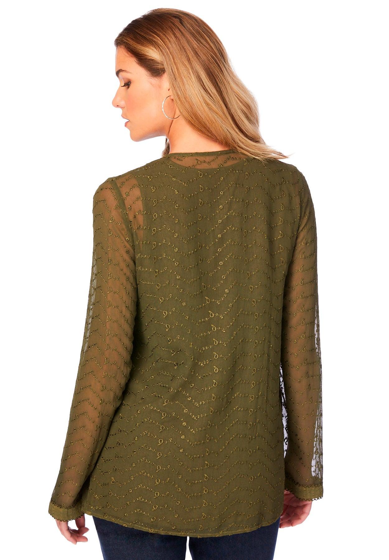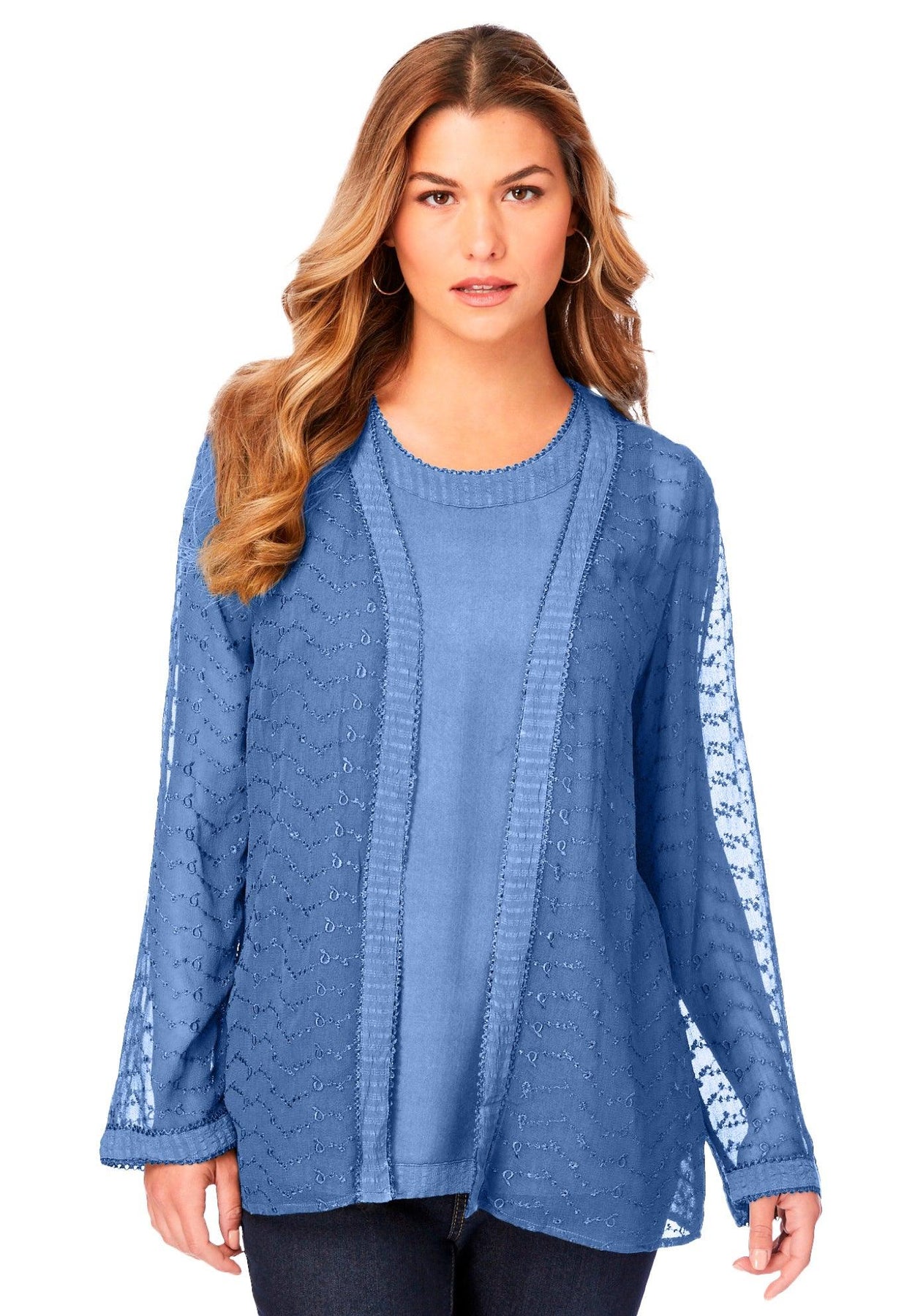 Embroidered scoopneck tank and hem. Long-sleeve cardigan with allover embroidery. The easiest way to upgrade your style is in something that's going to make you shine, and this combo is just the ticket. You can effortlessly dress it up or down, perfect for RSVP's, get-togethers and so much more.