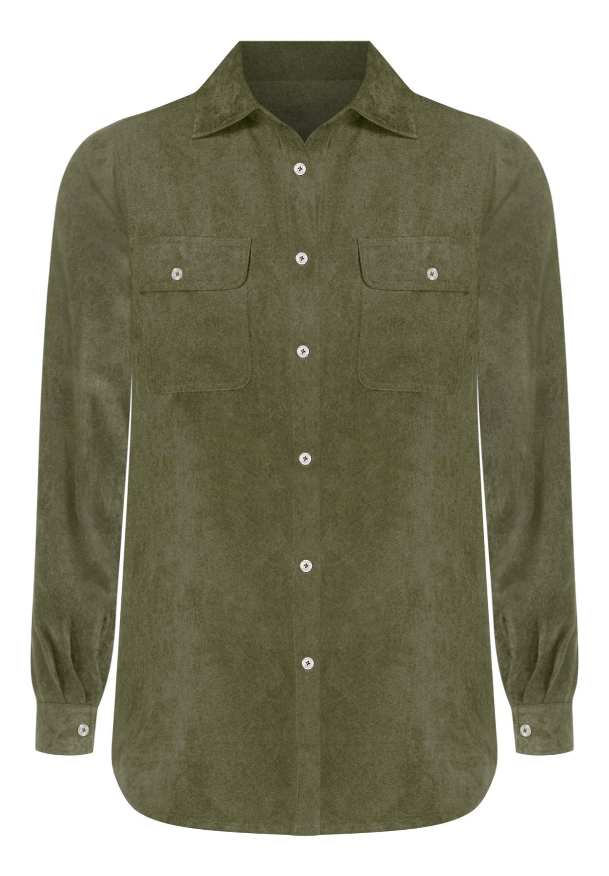 What makes this shirt great is how smooth and easy the faux suede fabric is. Perfect for layering over a tee or tank on chilly days. Button up in a classic shirt with the look and feel of suede. Long sleeves with adjustable button cuffs. A-line silhouette.