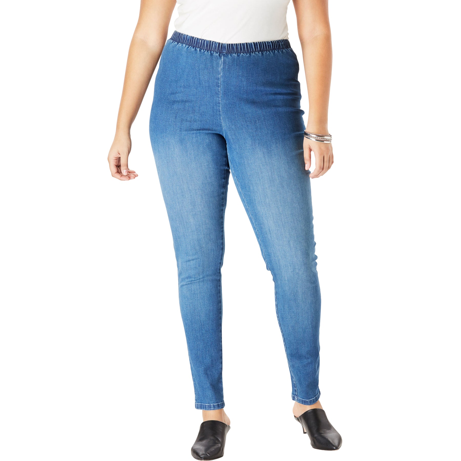 Easily slip in (and out) of these slim-leg jeans, designed with just the right amount of stretch for all-day comfort and a flattering fit. Perfect for everything from weekend outings to casual Fridays, this pair features an elastic waistband and no pockets for sleek style.