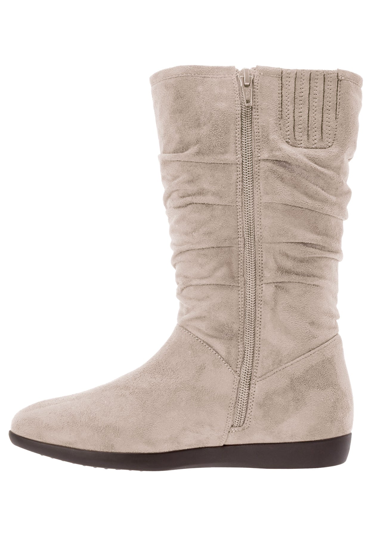 Wide calf boots with stylish scrunch shaft available in full and half sizes 7-11, 12 M, W, WW