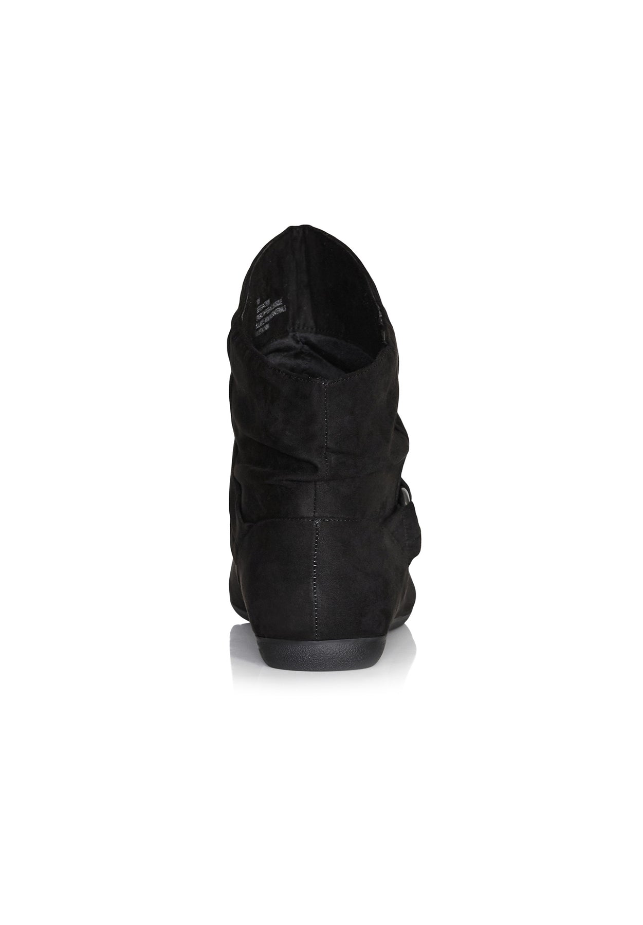 Introduce a comfortable yet sleek finish to your styles with the Serena Ankle Boot! Designed with a faux suede detail, wide fit and Cushioned Cloudwalkers insole, you'll be looking forward to your next city adventure with these boots. Key Features Include: - Round toe slip on ankle bootie- Wide width fit- Cushioned Cloudwalkers insole- Faux suede finish- Side pleat buckle strap feature- Ruched detailingStyle with a fitted collared dress and gold accessories.