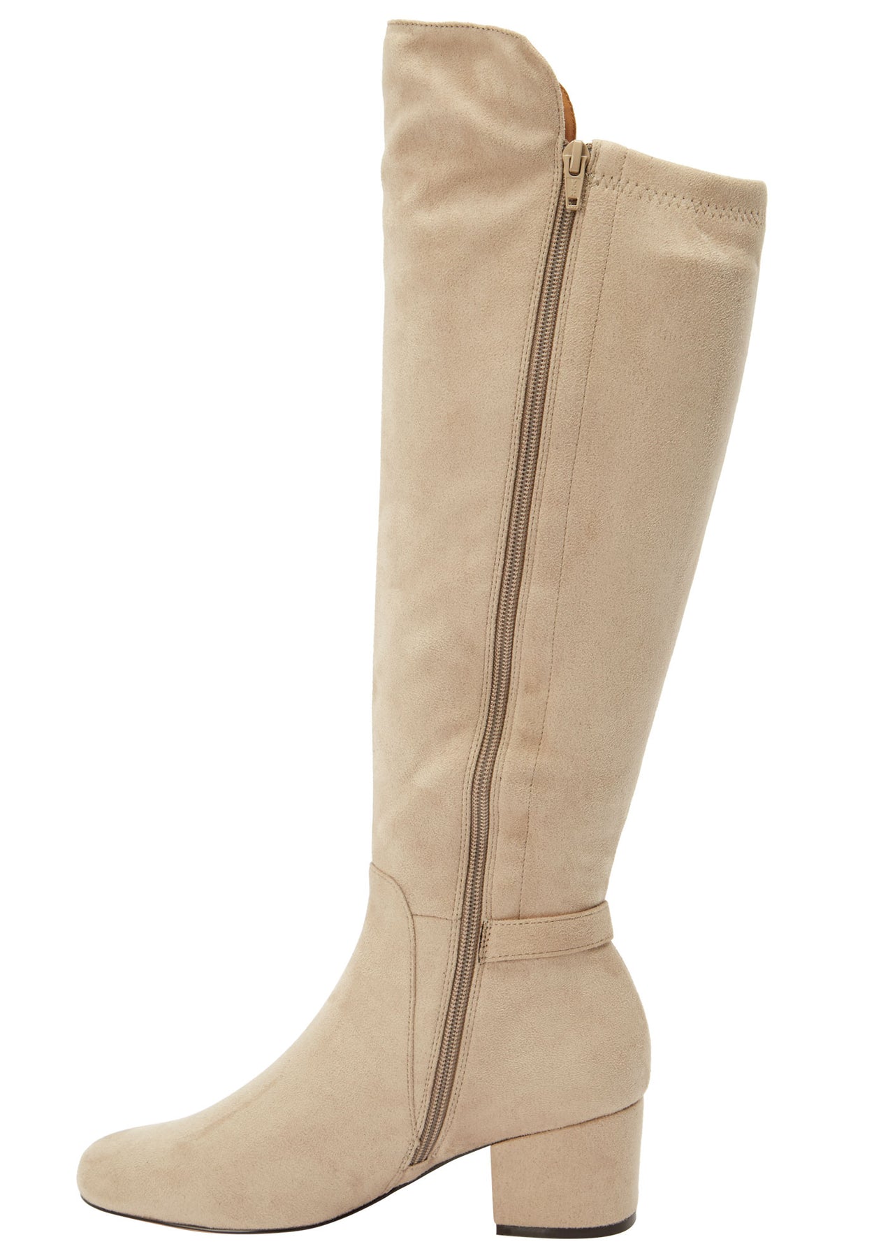 A stretch suede-like upper and a wide width calf beautifully blend together to create a stylish silhouette and a perfect fit, too. This boot has a modern look with a classic appeal and the versatility to match with most anything in your wardrobe.