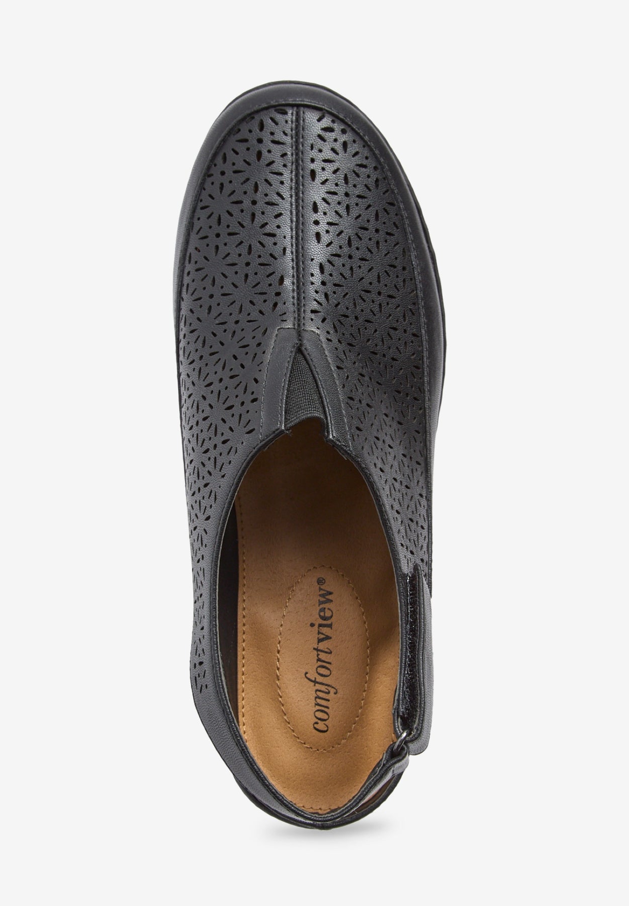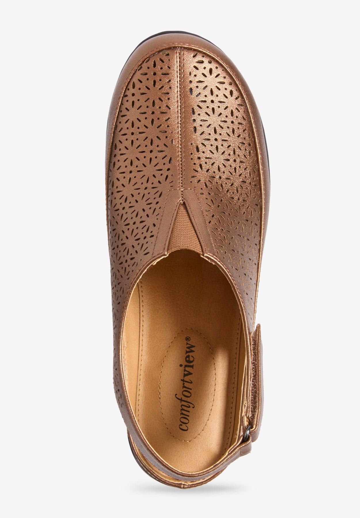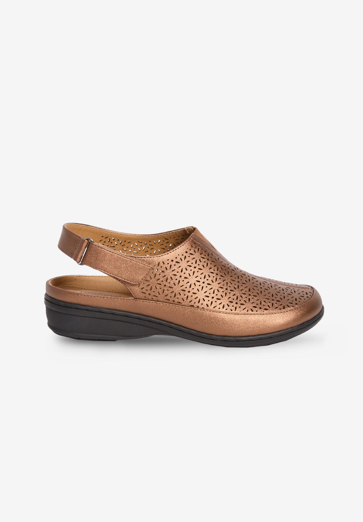 A must-have for your work-to-weekend closet! These versatile slings feature a faux leather upper with pretty details and adjustable, self-adhesive strap.