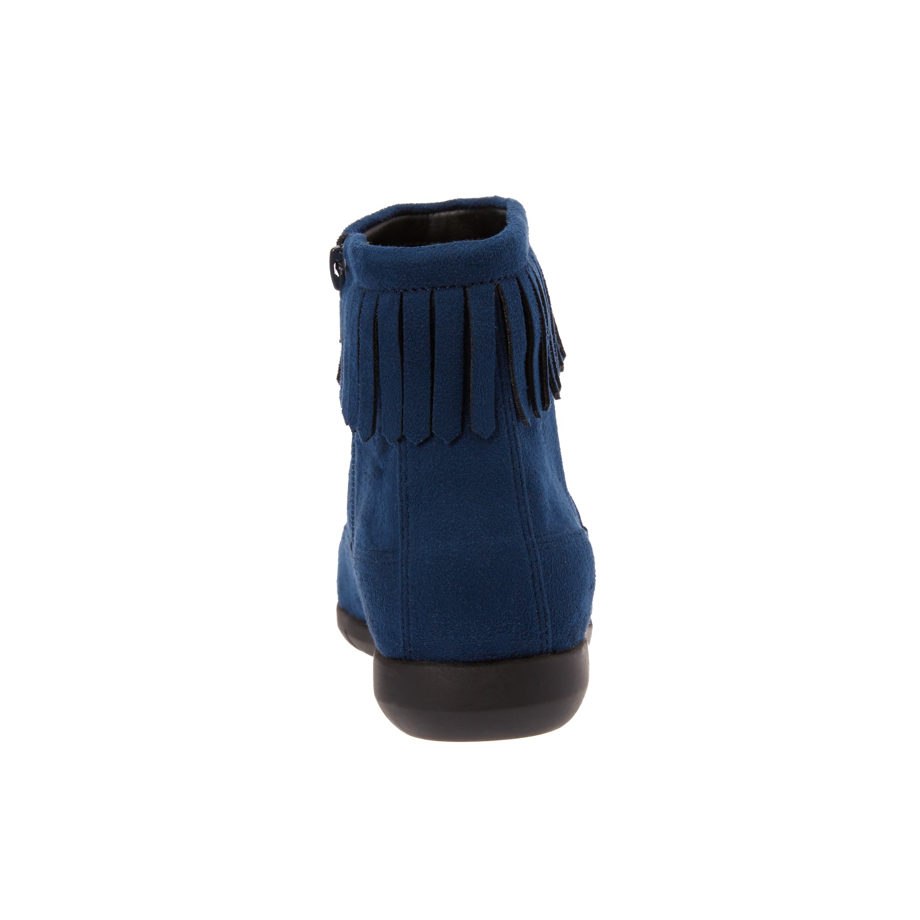 Suede-like fringe booties available in full and half sizes 7-11, 12 M, W, WW