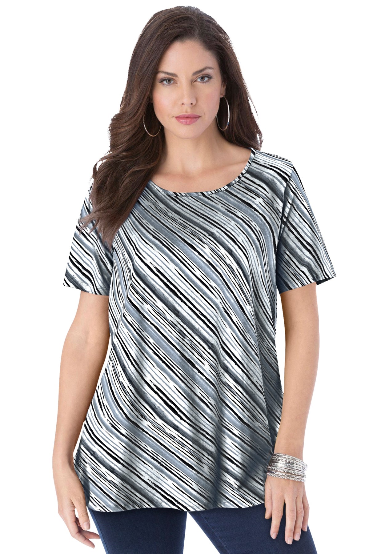 Plus Size Cotton Ultimate Swing Tee with Keyhole Back | Roaman&