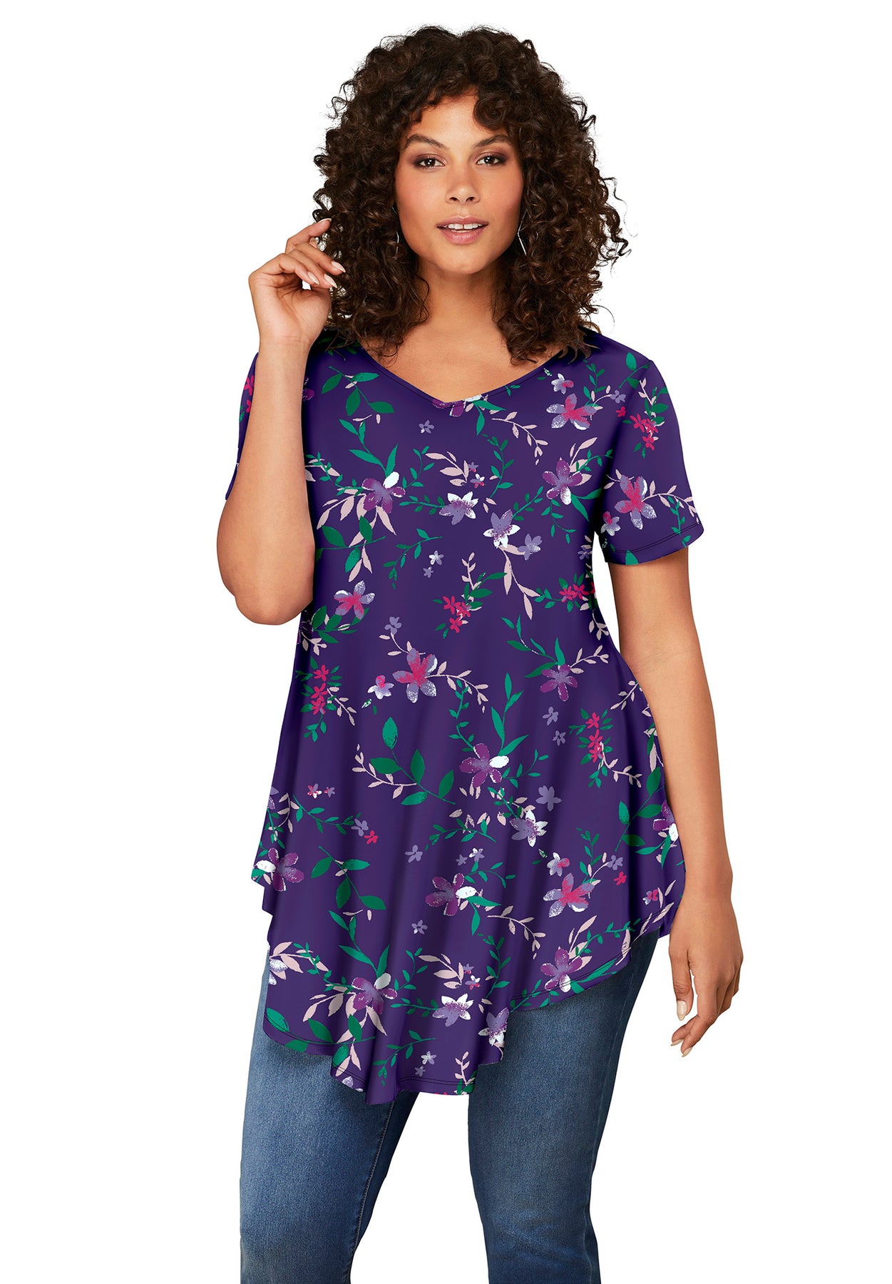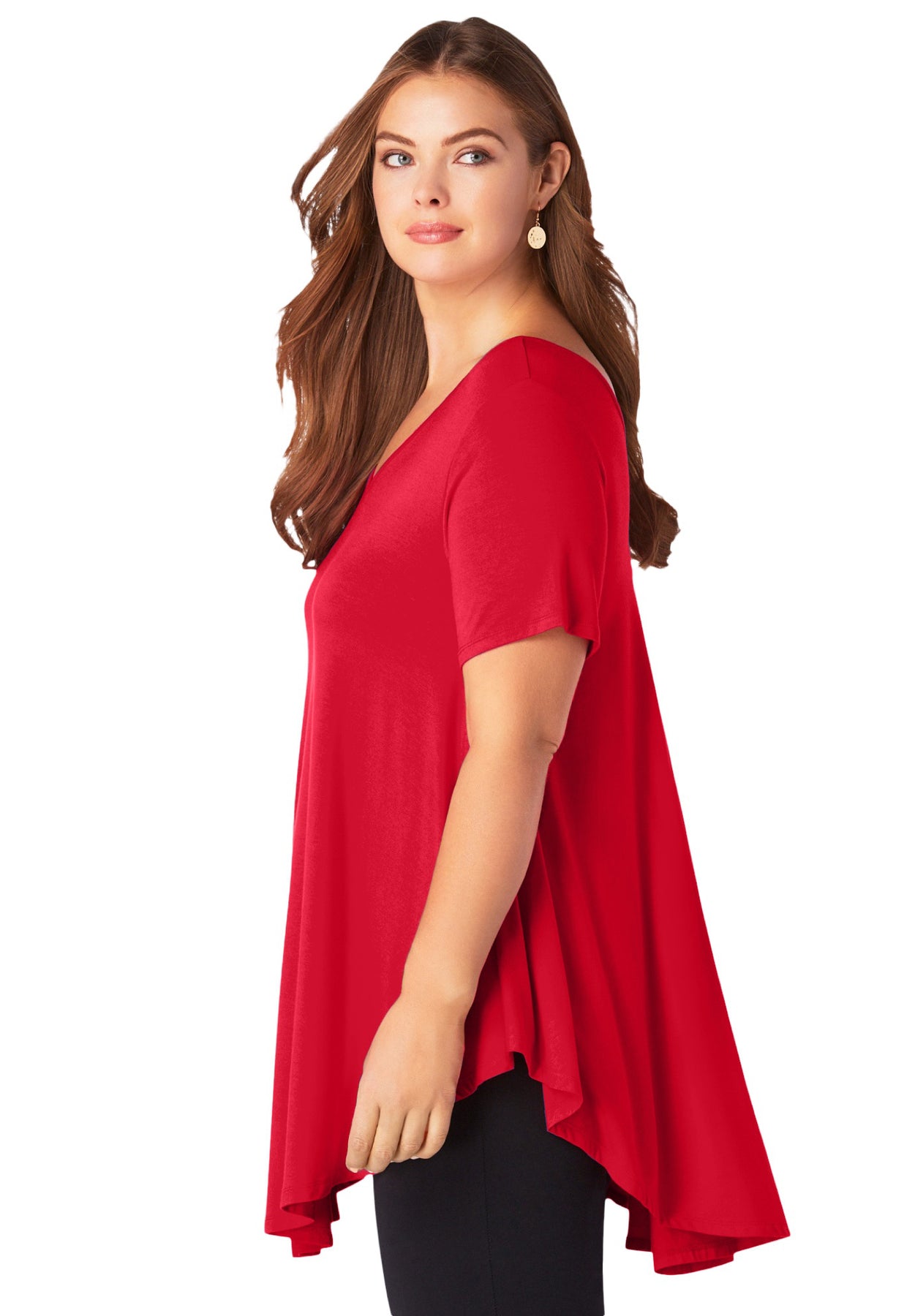 This top is crafted in an extra-flowy fabric and has a swing silhouette for an easy, chic fit. Perfect over leggings, but dresses up well over pants, too. With a shaped hem and front and back V-necks.
