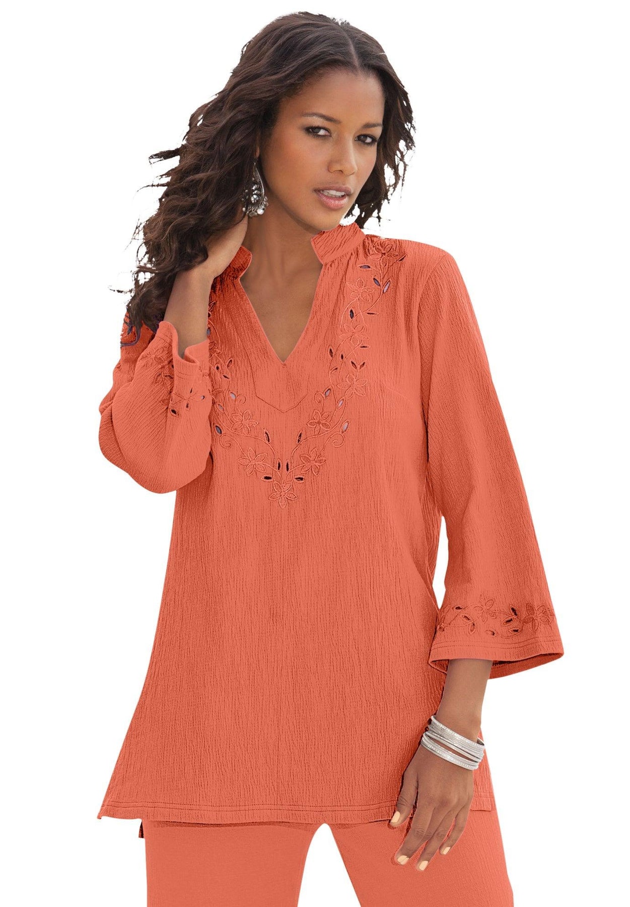 Eyelet Cutout Crinkle-Knit Gauze Tunic