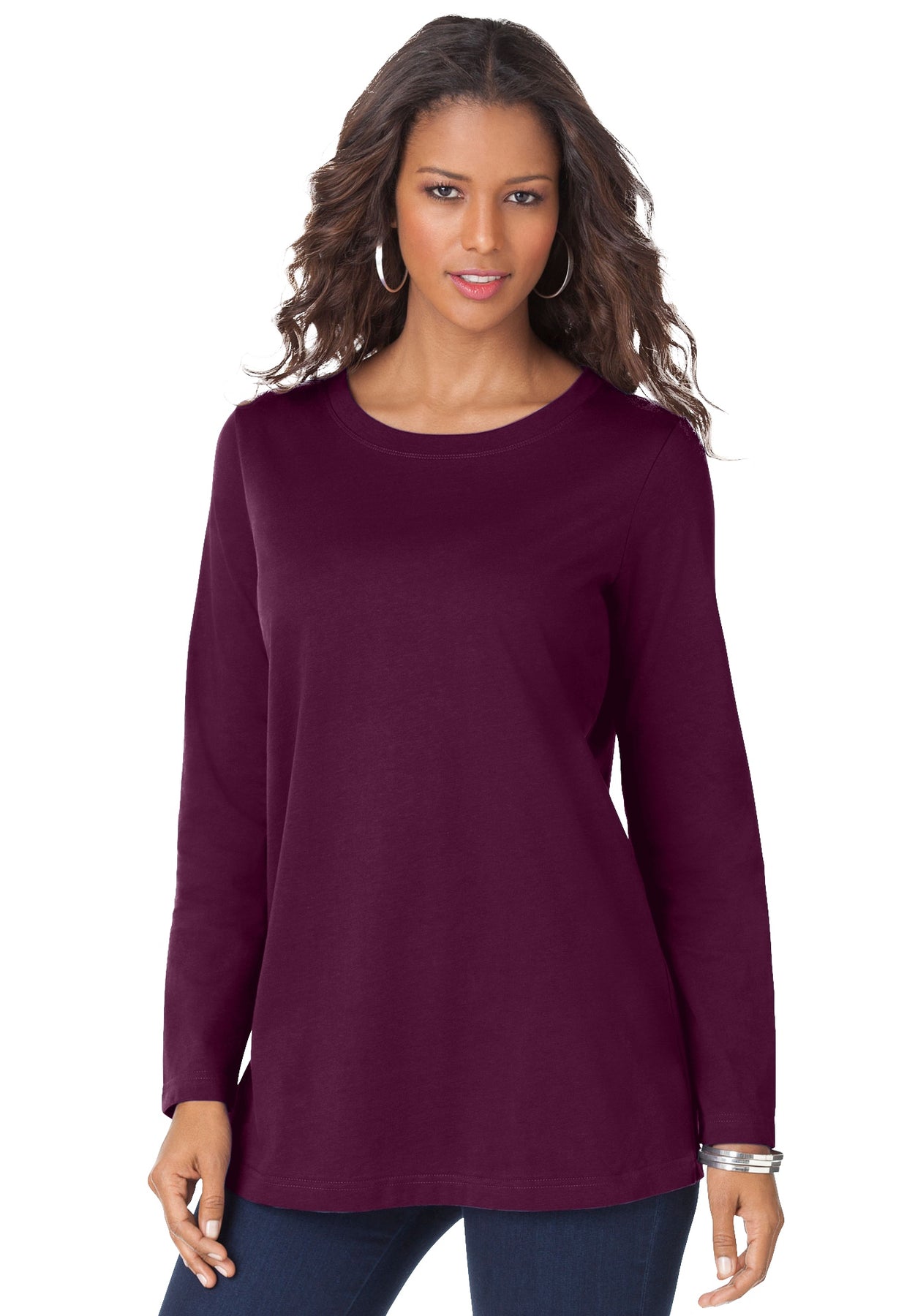 Plus Size Cotton Ultimate Long Sleeve Crewneck Tee | Roaman&