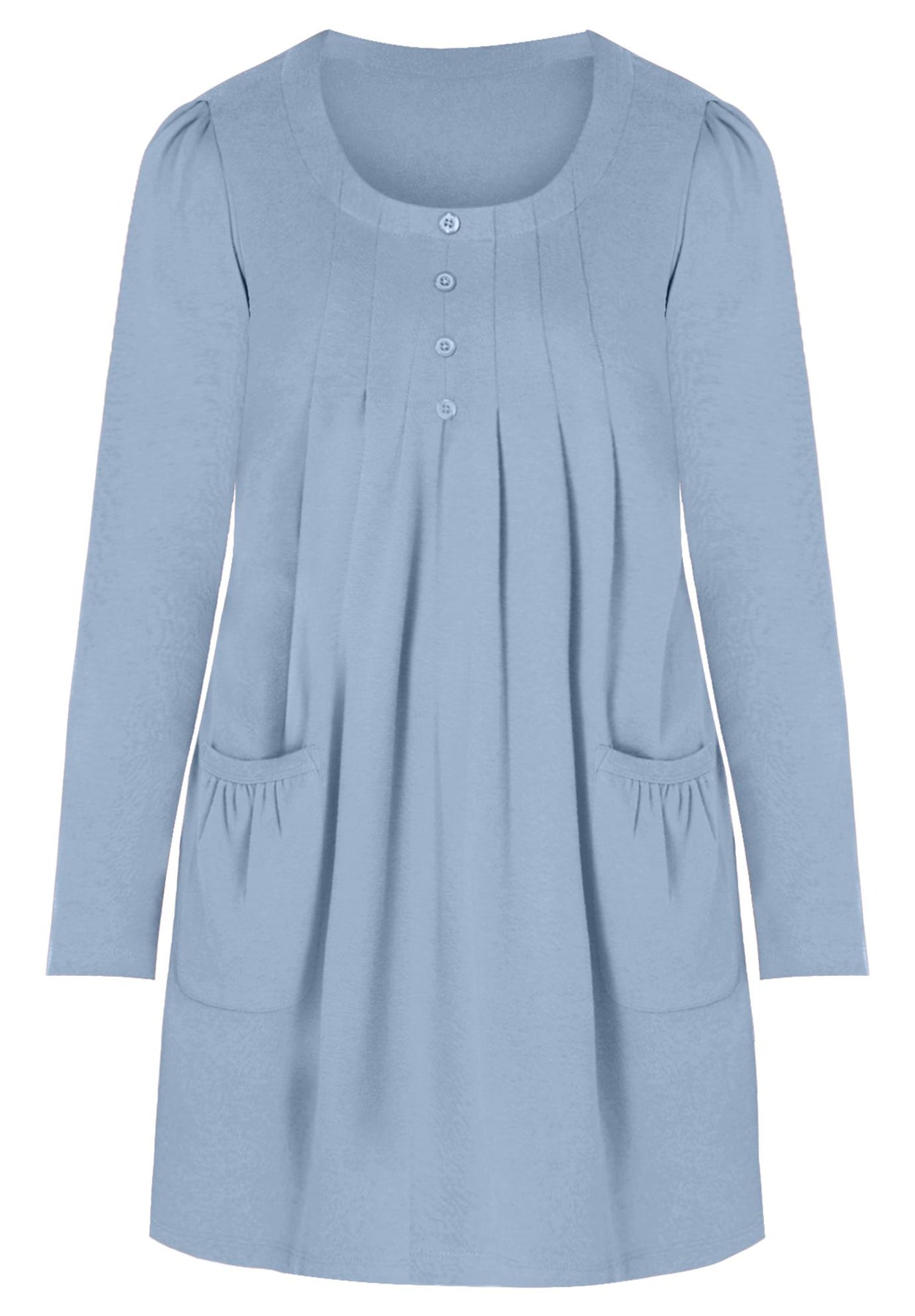 We gave this top two pockets and decorative buttons for a little extra style. It's shaped to suit you with front pleats and a 34" tunic length that's just right for wearing over your favorite bottoms. Loose yet stylish, this is sure to be a favorite.