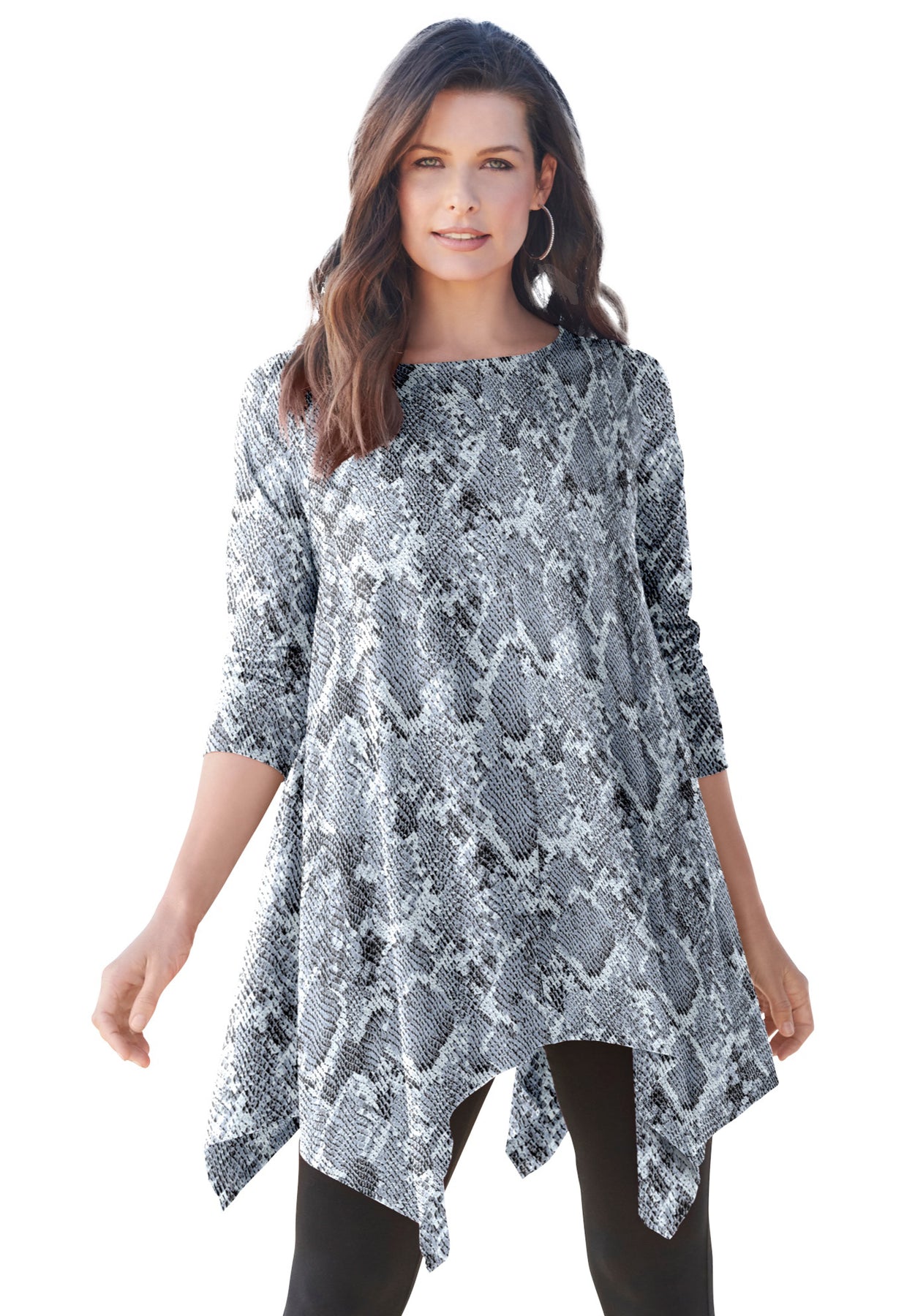 The generous cut of this flowing swing top is fashionably loose and gracefully oversized, with a statement-making hem and flattering boatneck. It pairs so well over leggings or jeans, and is easy to dress up or down.