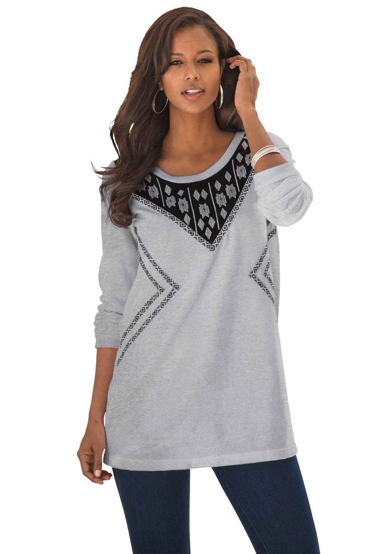 Gorgeous embroidery lends a high-fashion feel to the easy-to-toss-on silhouette of this tunic.