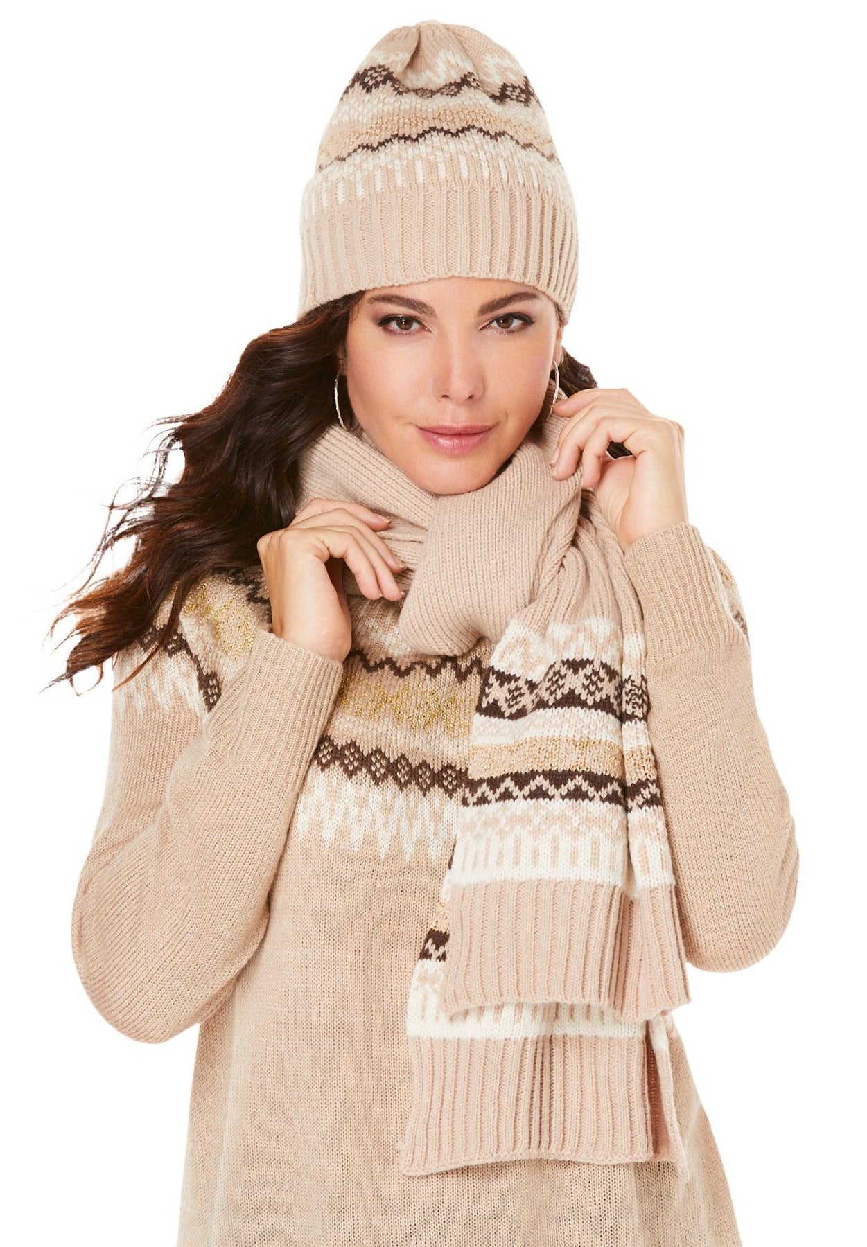 Warm and cozy, this two-piece set features a classic pattern and rib trim. It's an easy way to style up all your wintry looks.