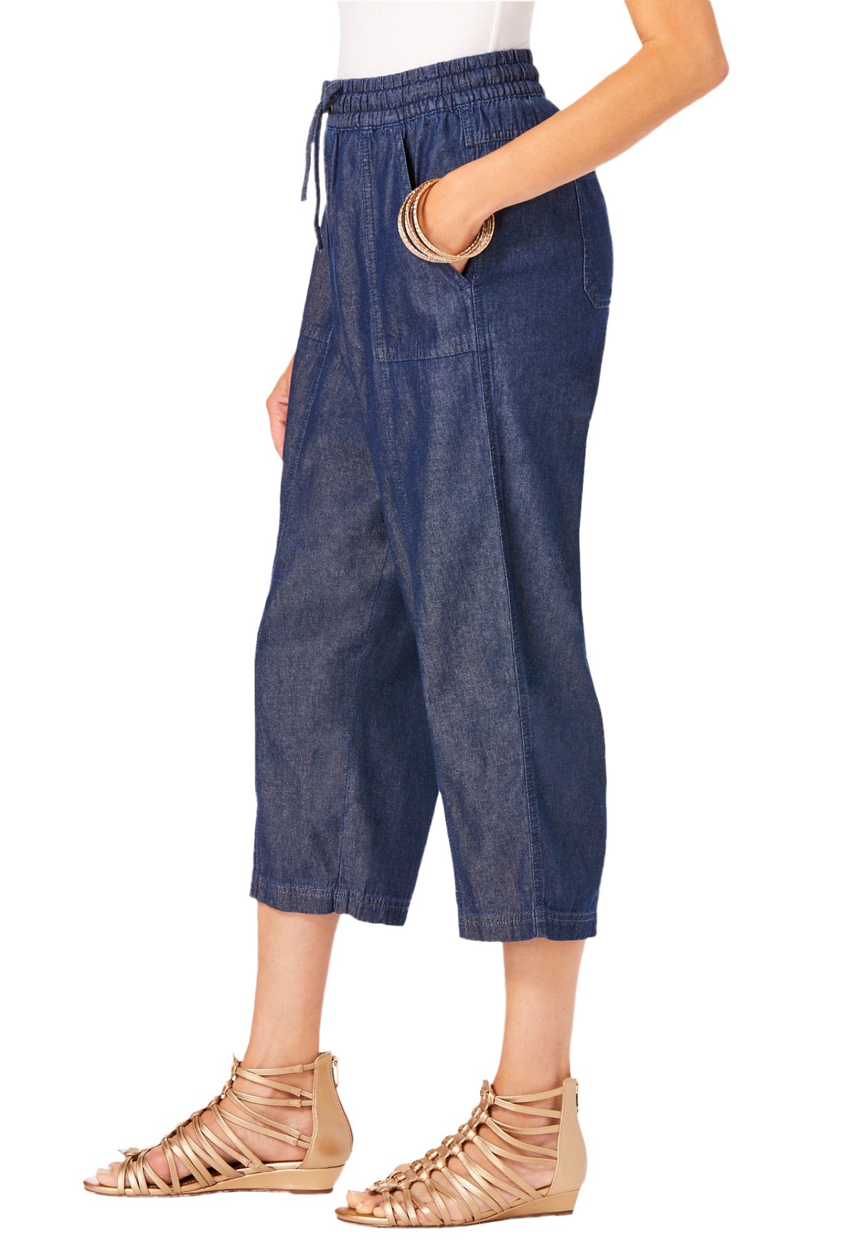 Plus Size Chambray Wide Leg Capri Pant | Denim 24/7 by Roaman’s