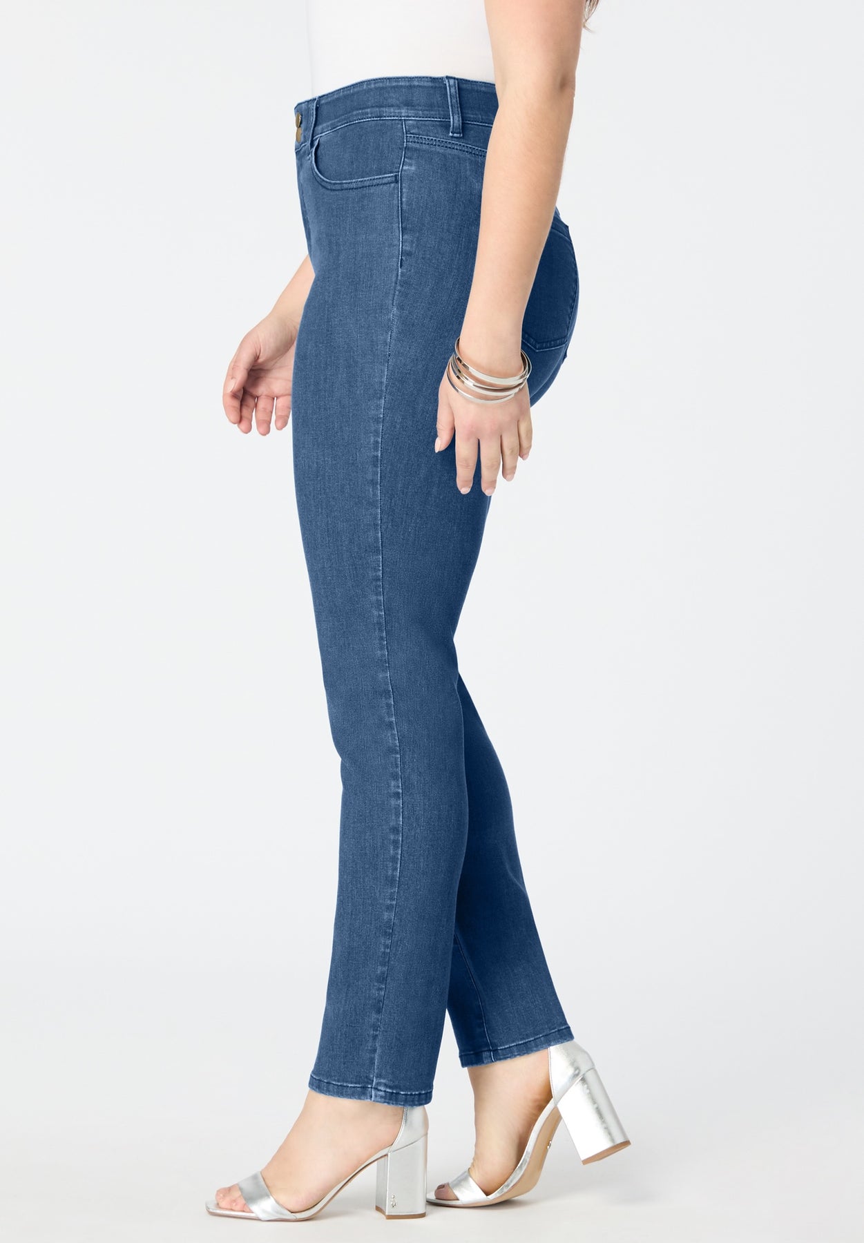 Designed with a classic straight-leg silhouette, these jeans are crafted with built-in tummy control technology, which holds you in at the waist, creating a longer and leaner silhouette. Made from super-stretch denim, they offer the perfect fit with a flattering silhouette.