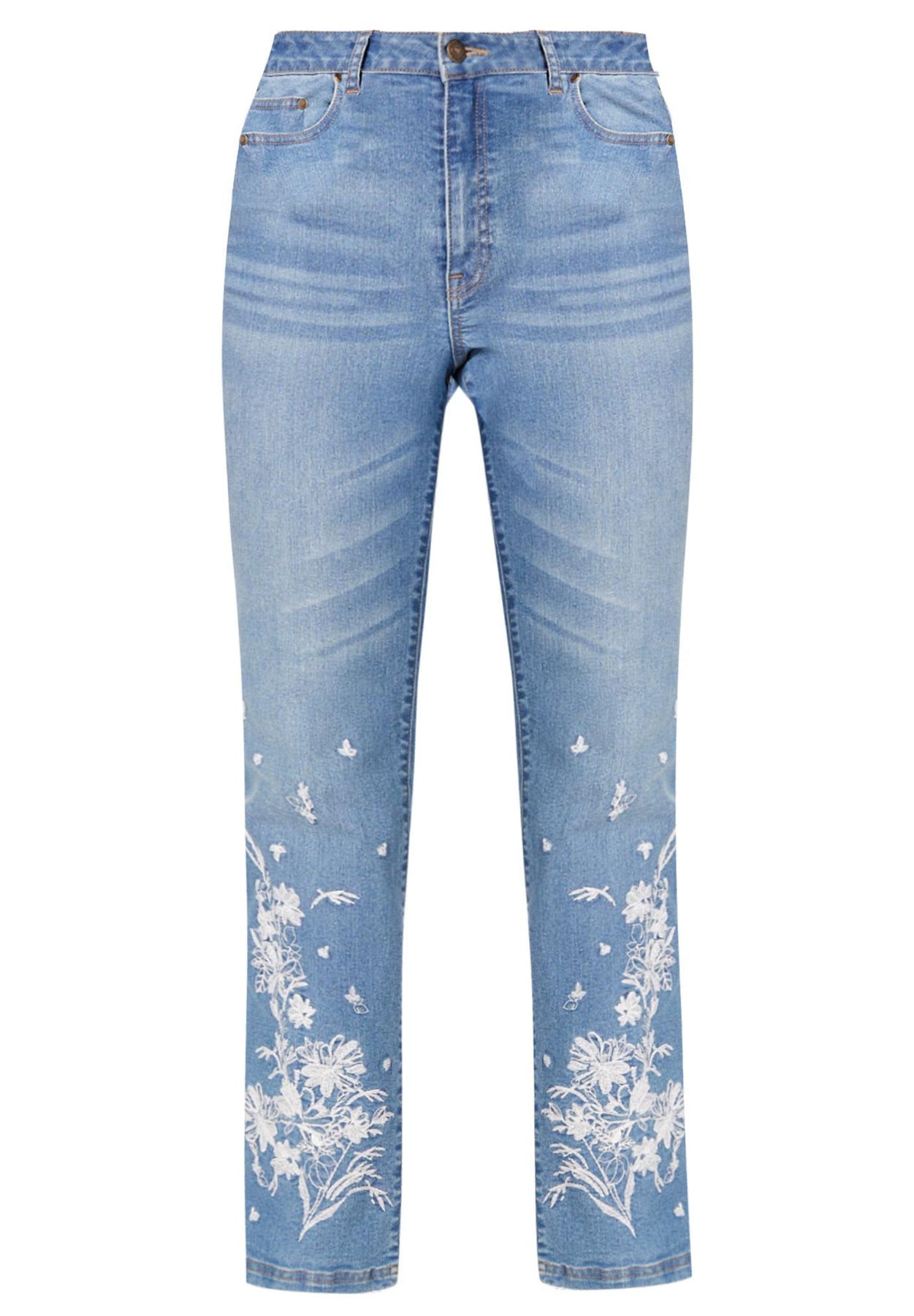 Plus Size Floral Embroidered Straight Leg Jean | Denim 24/7 by Roaman’s