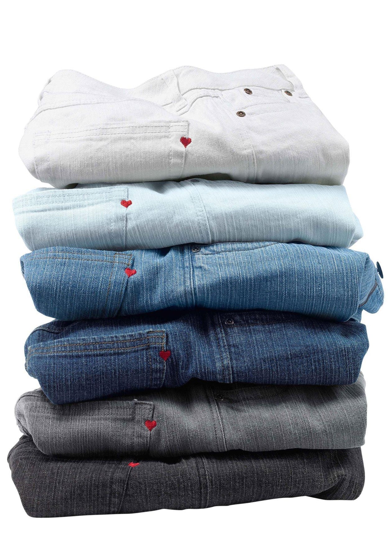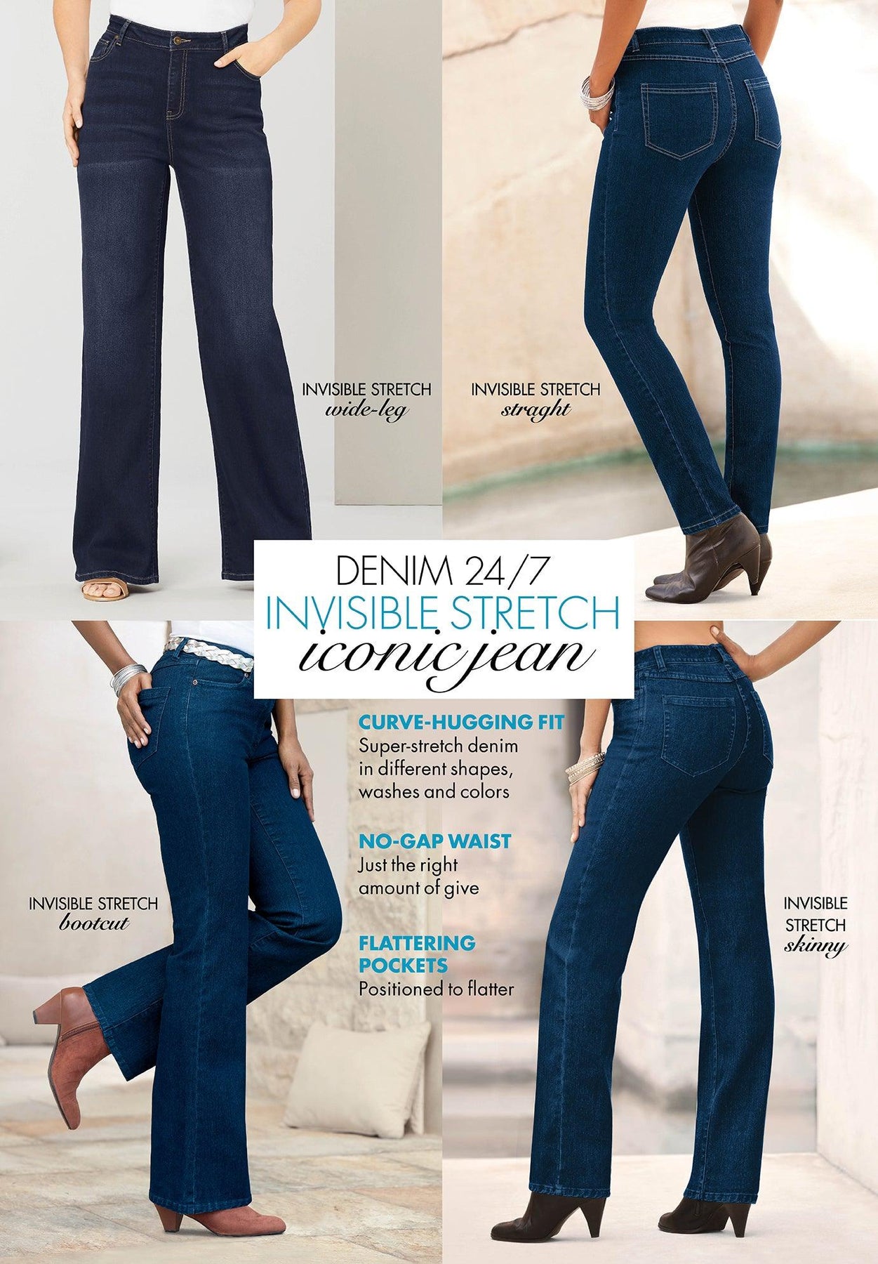 These are great-fitting jeans, made to serve your curves. All of our core, classic denim features an Invisible Stretch® waistband designed to eliminate back-gap. They sit comfortably at the natural waist and are designed to move with you in super-stretch denim with that curve-hugging fit you love.