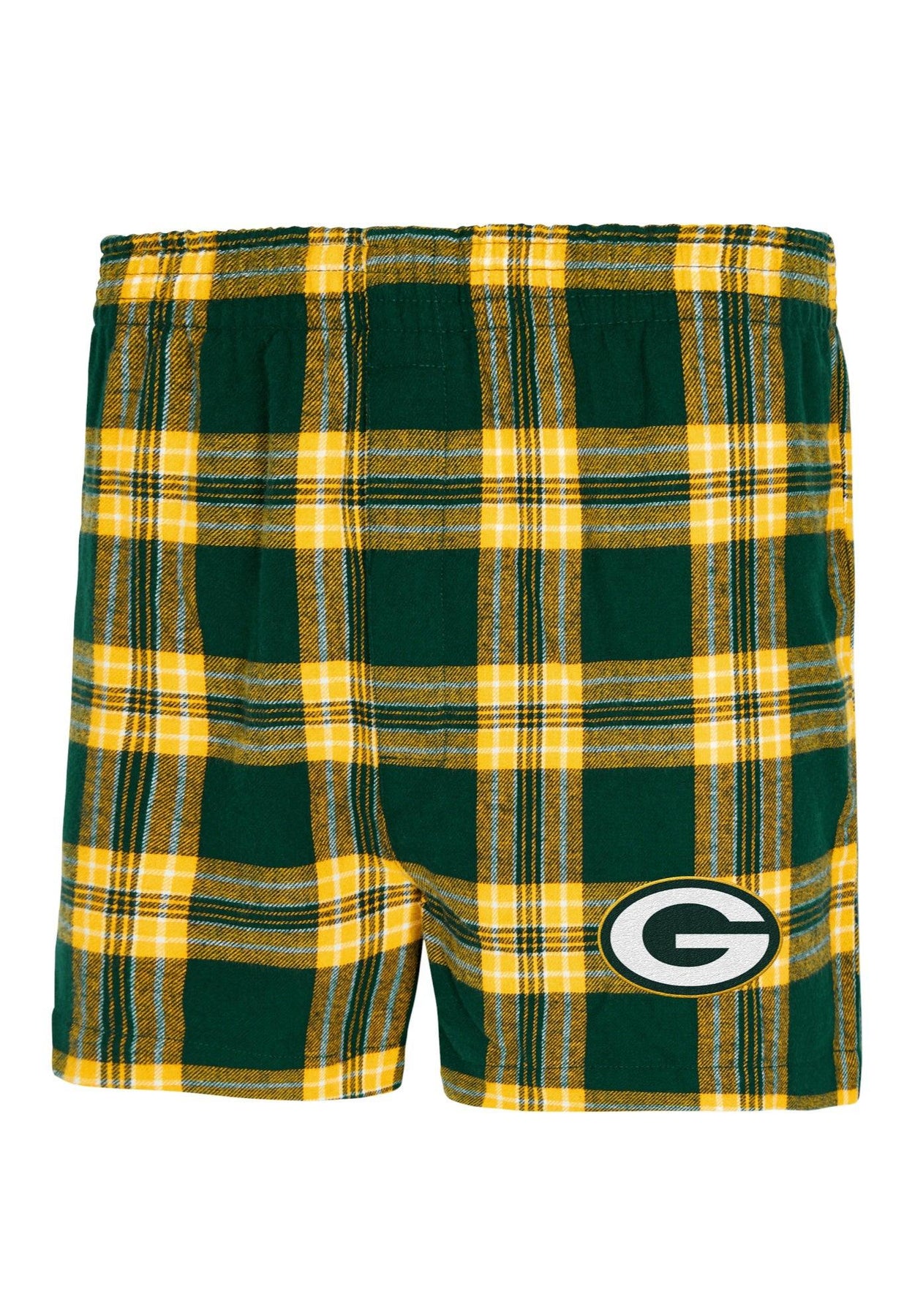 Play like you're in the NFL® with these boxer briefs. Embroidered with team logo and has a fake fly front. In soft cotton/poly flannel plaid.