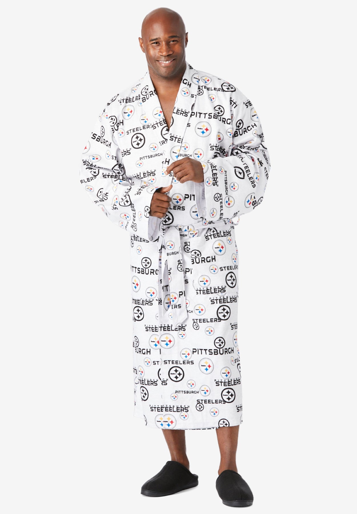 A roomy, oversized fleece robe with pockets and a sash with belt loops. Designed with an all-over brushed pattern, including your team's colors.