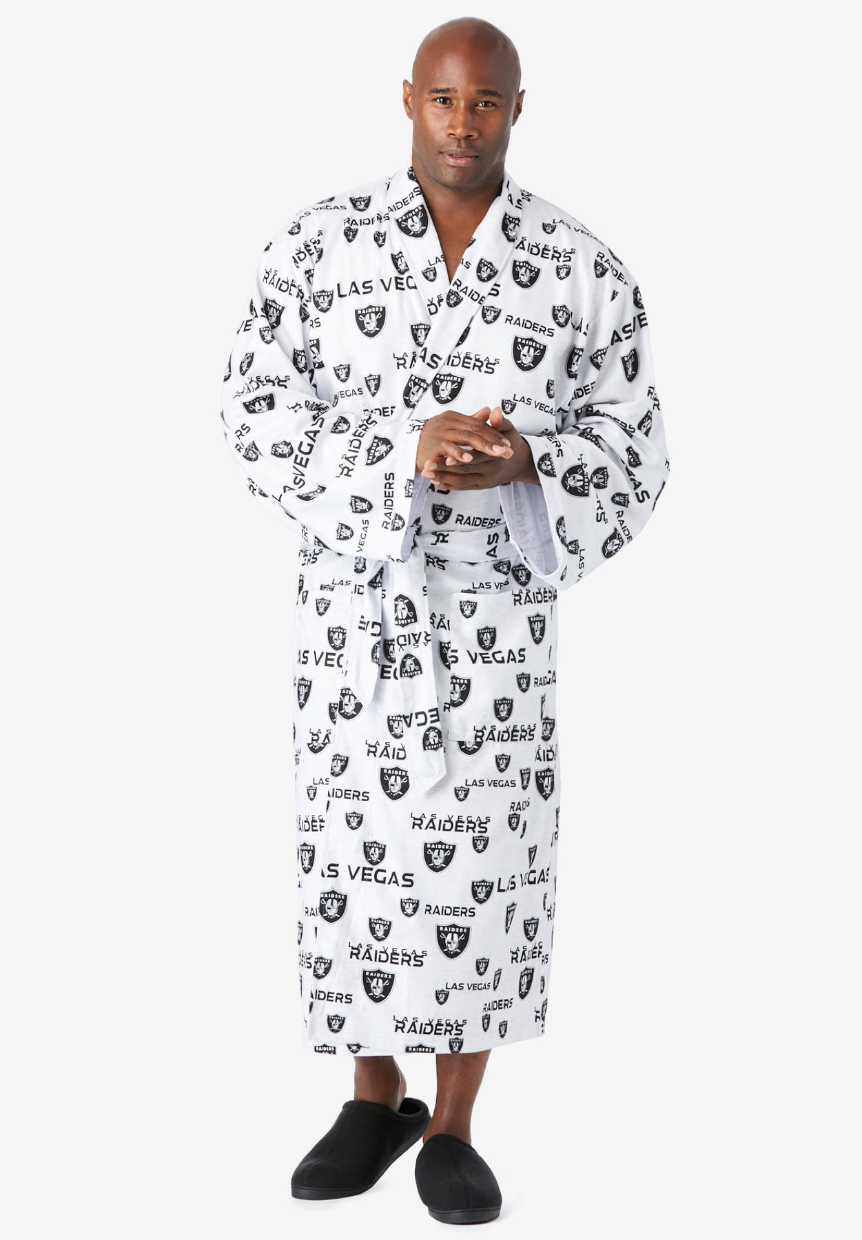 A roomy, oversized fleece robe with pockets and a sash with belt loops. Designed with an all-over brushed pattern, including your team's colors.