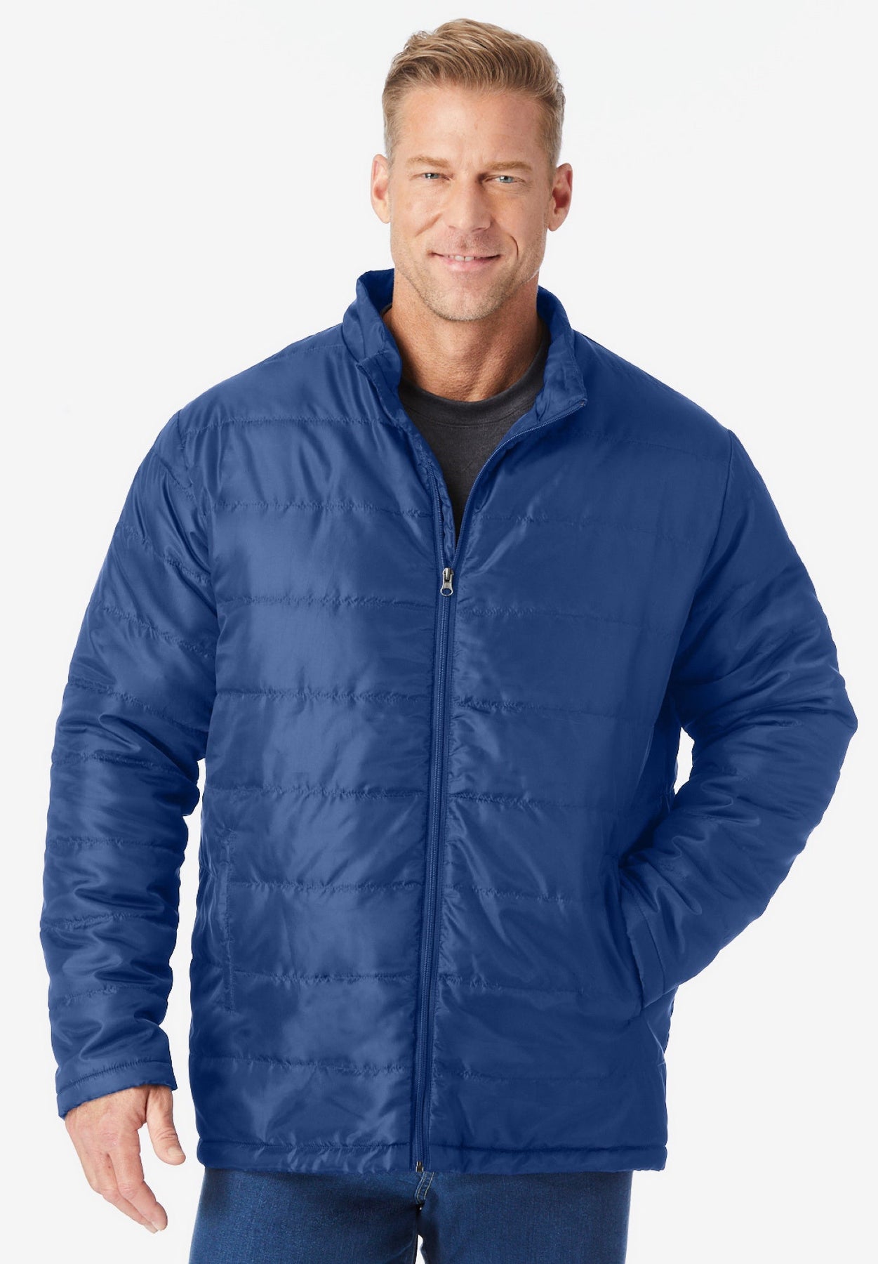 Lightweight comfort meets heavy-duty warmth in this packable puffer jacket with faux down fill and water-resistant nylon outer. When you are done wearing it, easily pack it away using the included self-close bag.
