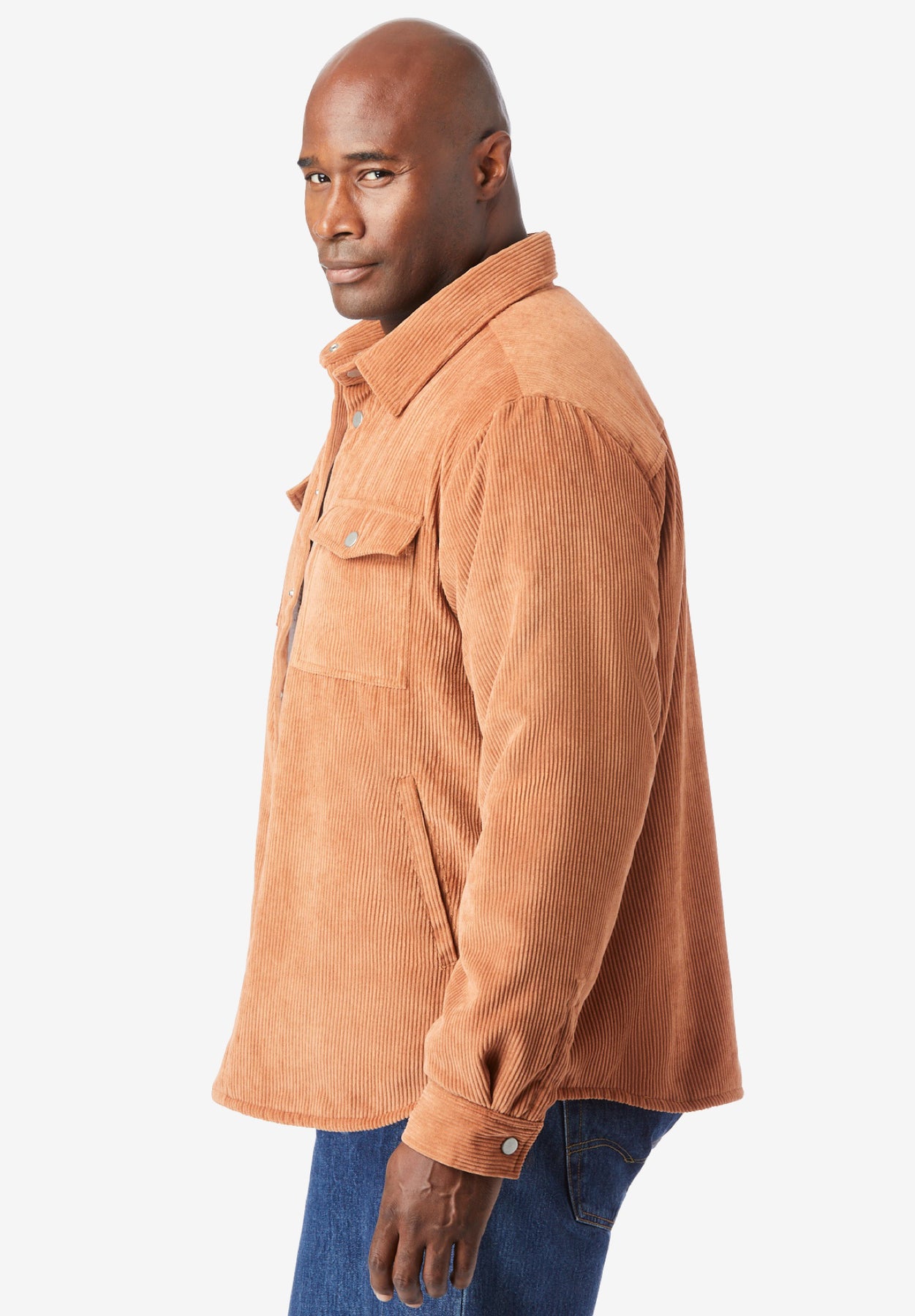 This easy-to-layer corduroy jacket is designed with a soft sherpa lining to keep you warm throughout the season. This lightweight jacket was styled with a standard shirt collar along with two chest pockets and two side seam pockets.