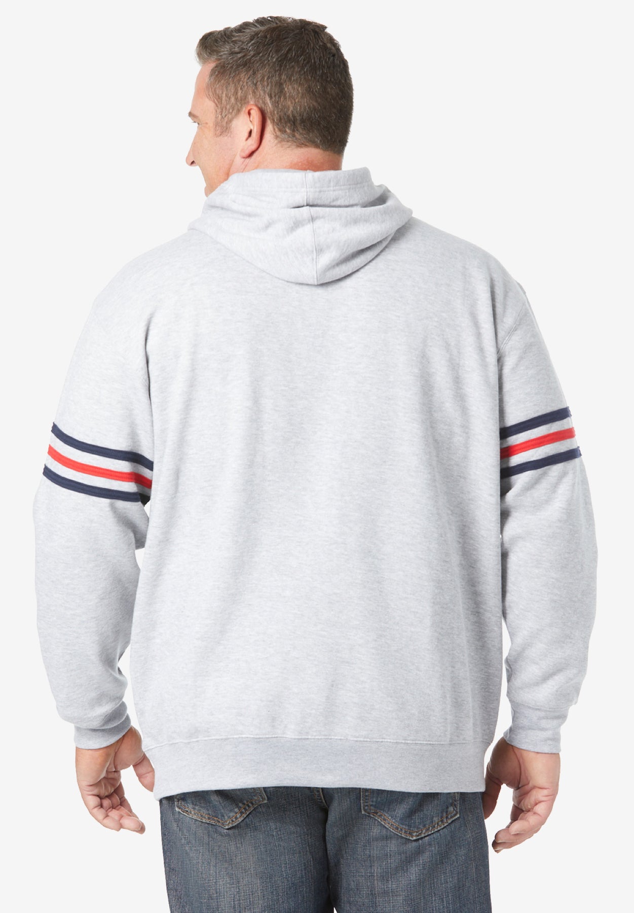 Comfort meets style with this sporty quarter-zip sweatshirt. Made with a kangaroo front pocket and a drawstring hood, this classic hoodie is detailed with sporty stripes on the sleeves and a small Fila® logo on the chest.
